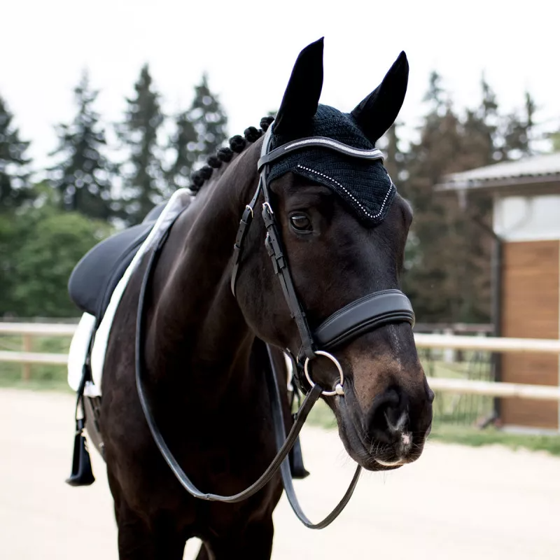 The Crystal Makila browband displays a truly ergonomic browband. It is elegantly decorated with crystals in silver, gold, blue or black. This browband can be adapted to the Harmonie bridle or full bridle.