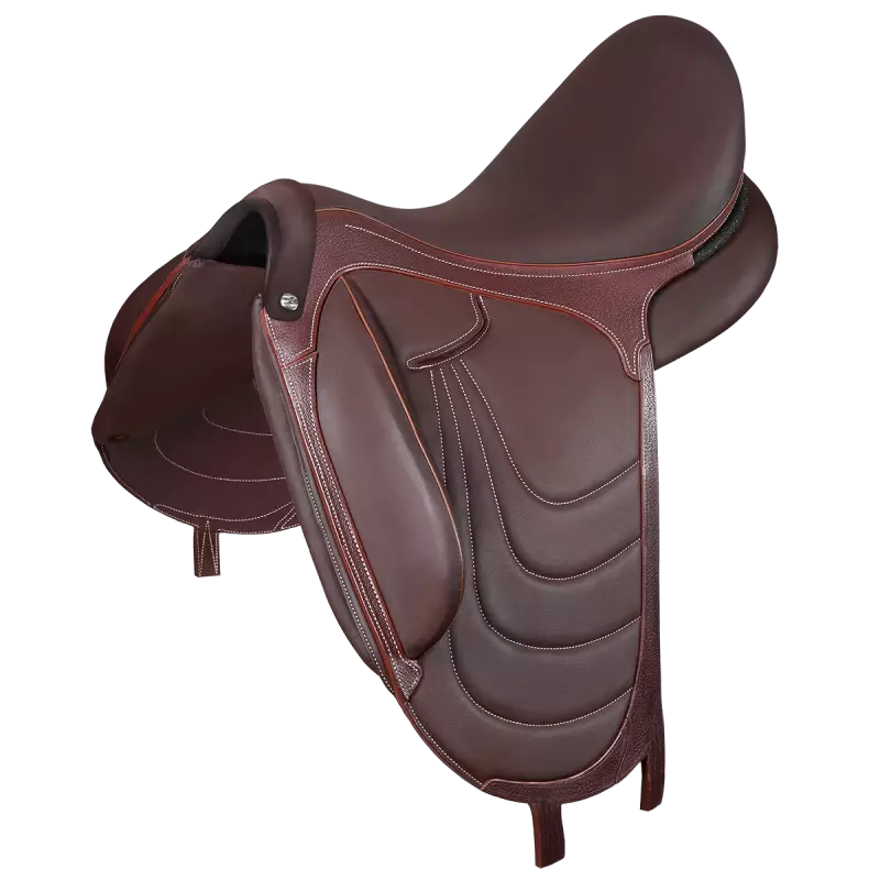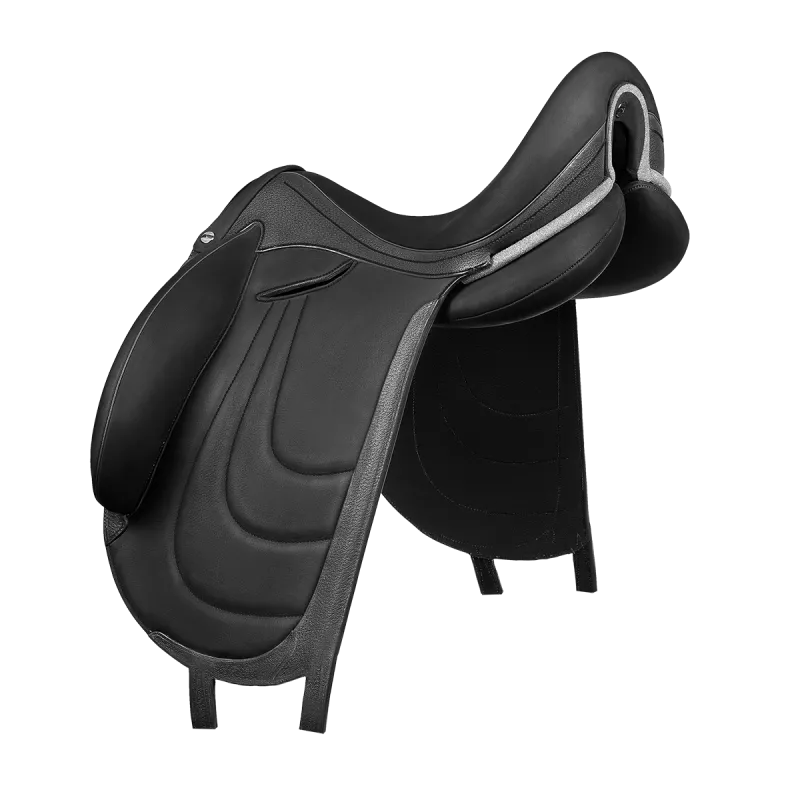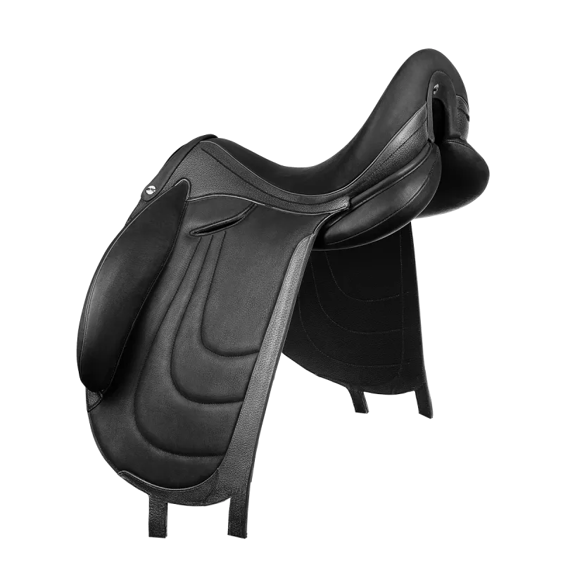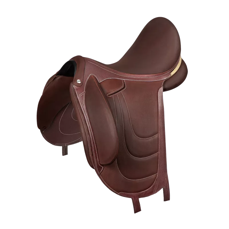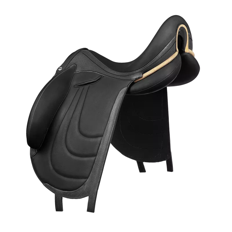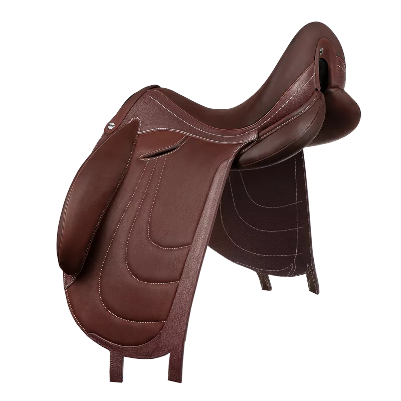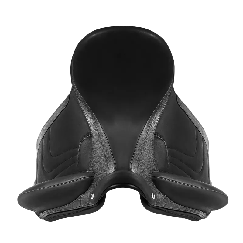 The Makila Harmonie S is a single-flap, deep-seated dressage saddle with a slender twist which helps the pelvis engage and makes opening the leg easier. This saddle has been created for the most demanding dressage riders, allowing them to experience close contact with their horses. Since the harness is equipped with a Dynamick® dressage tree which provides freedom of movement and allows pressure to be spread evenly on your horse’s back, it will give you lightness and flexibility when you perform dressage movements. In addition, its single flaps provide the rider with perfect stability and exact leg contact. Its pre-formed, attached flaps, knee and thigh blocks, and padding provide optimal comfort and improved communication between you and your horse. Its wide and well-defined gullet leaves your horse’s back unencumbered and provides additional comfort when performing dressage movements. Lastly, its wide, D3D panels allow pressure to be spread more evenly on your horse’s back (+30% load-bearing capacity). Use this saddle for dressage or on the flat—registered model.