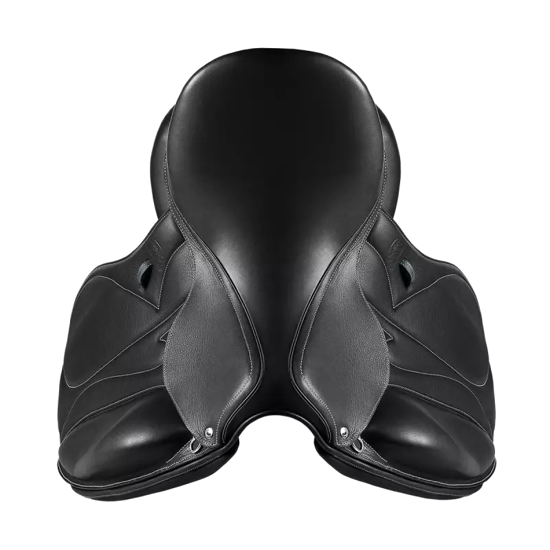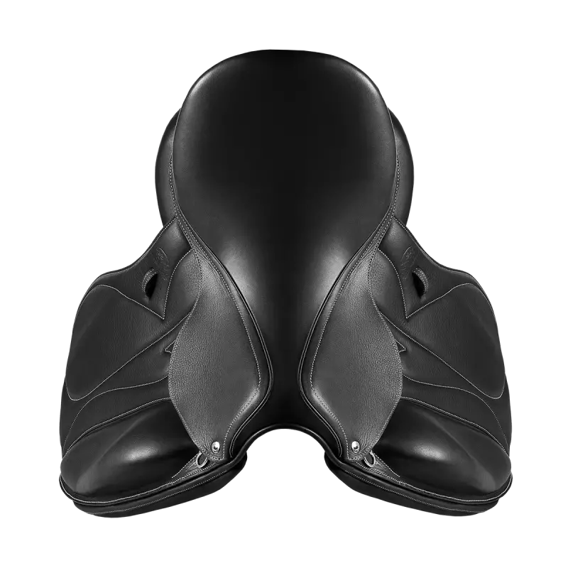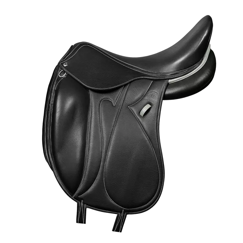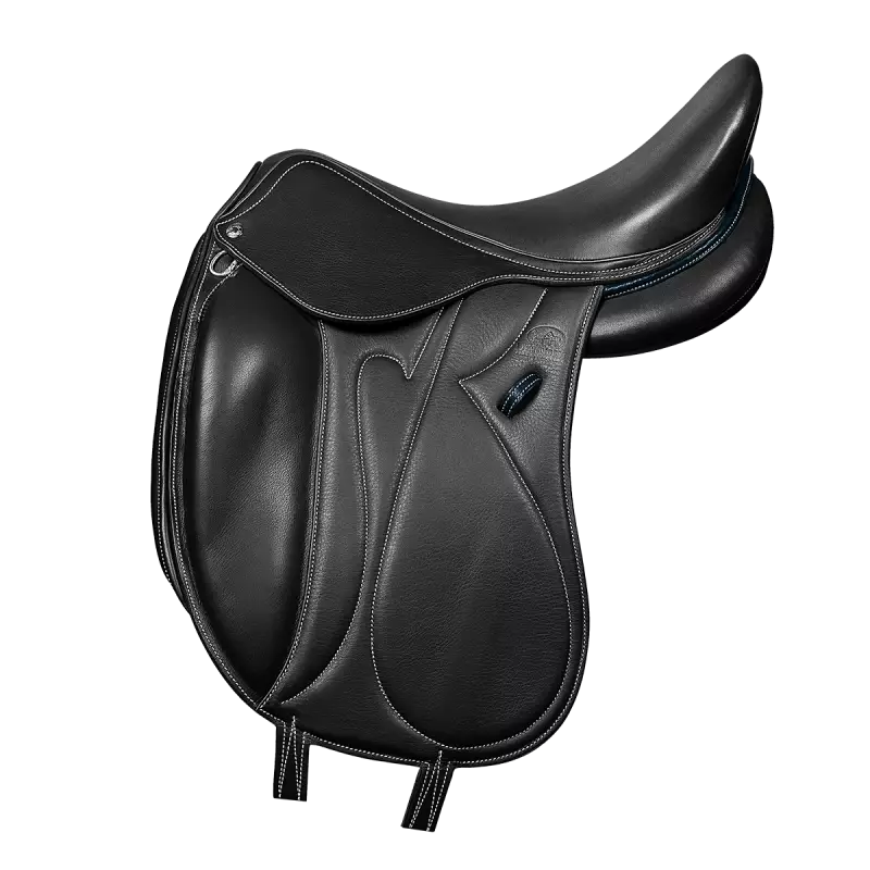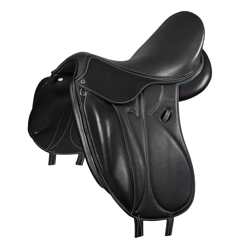 The Makila S, with its iconic design, is a single flap saddle with a deep seat which highlights the harmony of the rider and horse combination. Its prominent knee and thigh blocks and stirrup bars set further back provide the rider with perfect stability and very precise leg contact. Its advanced flaps allow the rider to have a fluid position. In addition, the attached girthing provides maximum comfort and close contact with the horse. Lastly, its flexible D3D panels are perfectly symmetrical allowing pressure to be spread more evenly on your horses back. Use this saddle for dressage or on the flat. Registered model.
