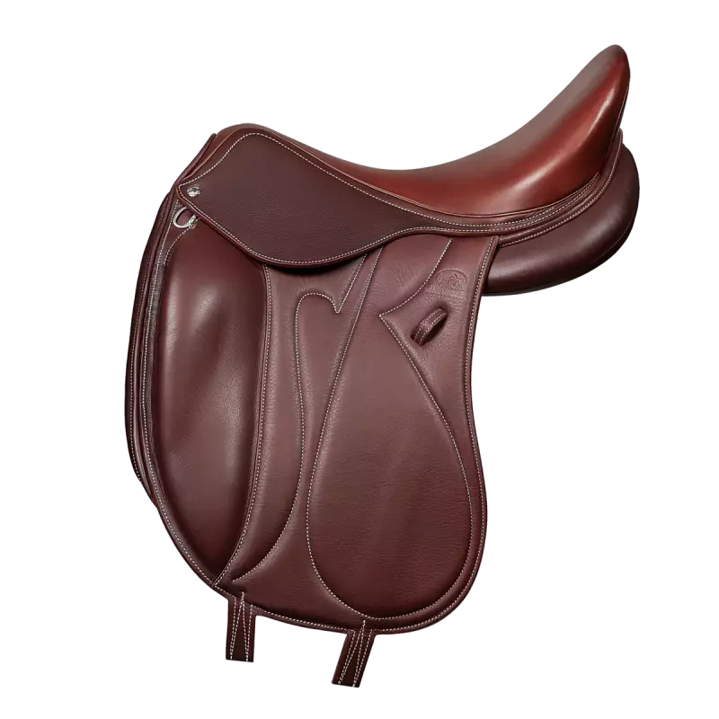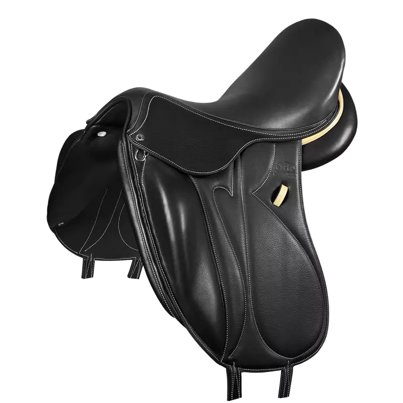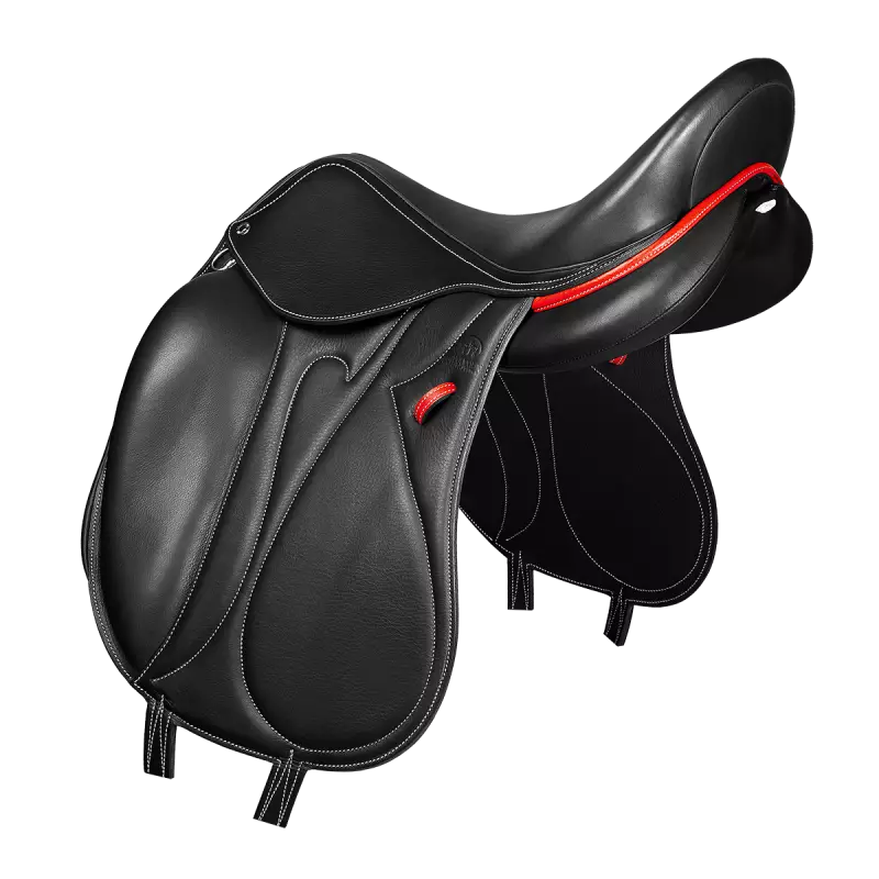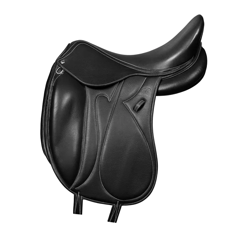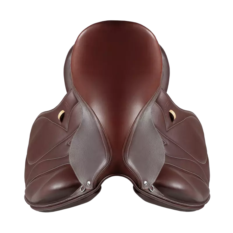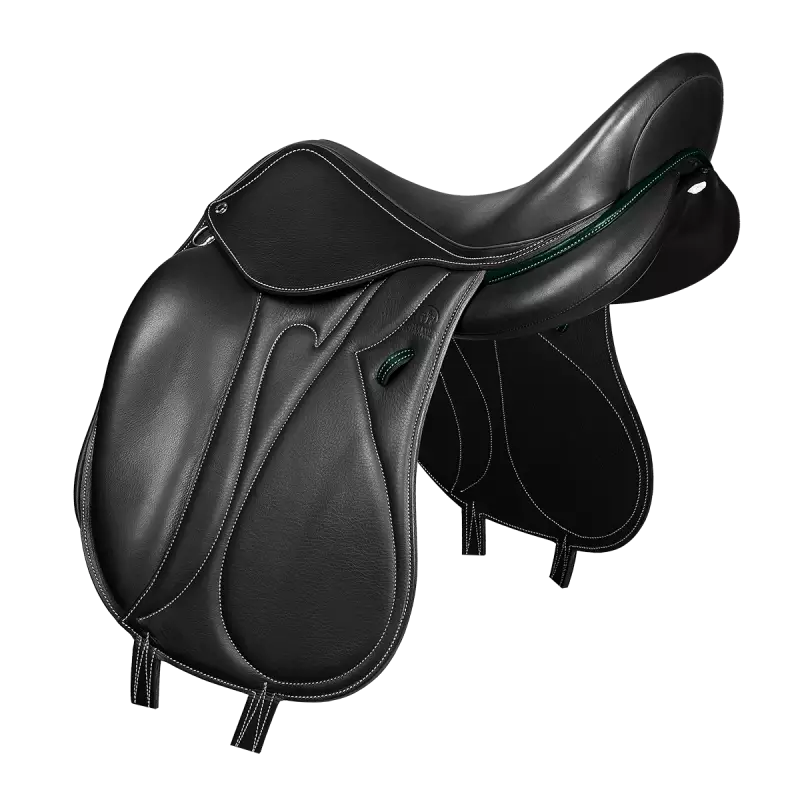 The Makila S, with its iconic design, is a single flap saddle with a deep seat which highlights the harmony of the rider and horse combination. Its prominent knee and thigh blocks and stirrup bars set further back provide the rider with perfect stability and very precise leg contact. Its advanced flaps allow the rider to have a fluid position. In addition, the attached girthing provides maximum comfort and close contact with the horse. Lastly, its flexible D3D panels are perfectly symmetrical allowing pressure to be spread more evenly on your horses back. Use this saddle for dressage or on the flat. Registered model.