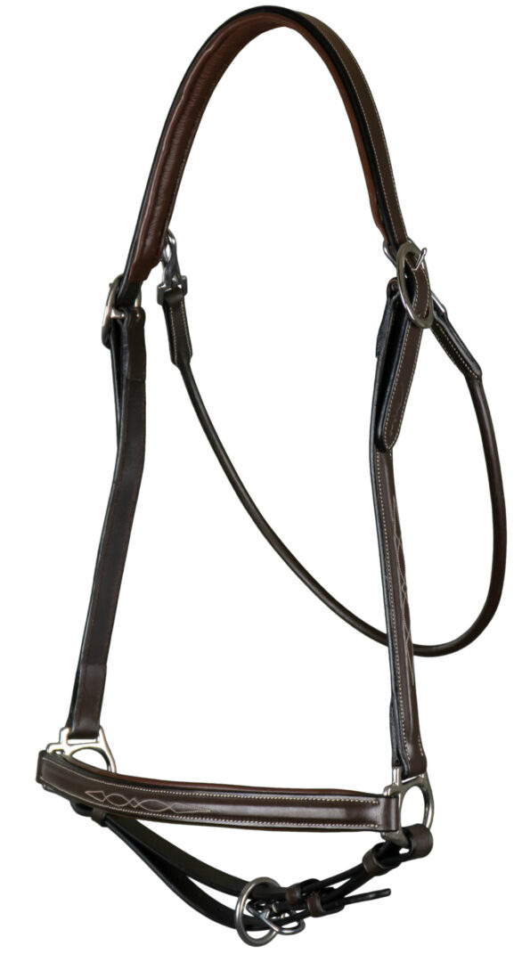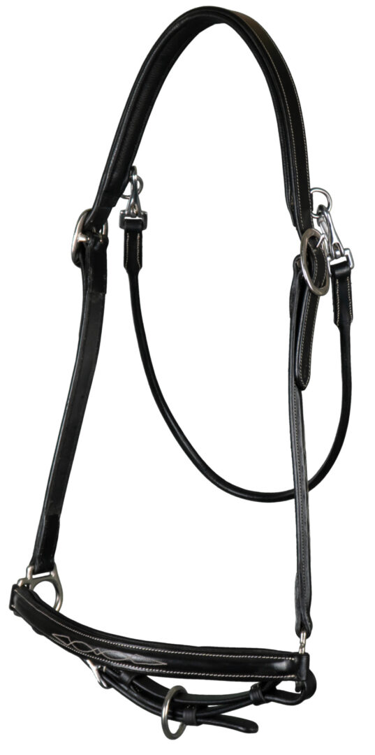 Grooming head collar crafted from Grade 1 buffalo leather. Featuring a detachable throatlatch to enable ease of grooming, a headpiece which is adjustable with buckles on both sides & a padded, slightly raised and fancy stitched noseband which is also adjustable under the jaw. Other features include fancy stitched cheek pieces, cream stitching & steel buckles & snaps.