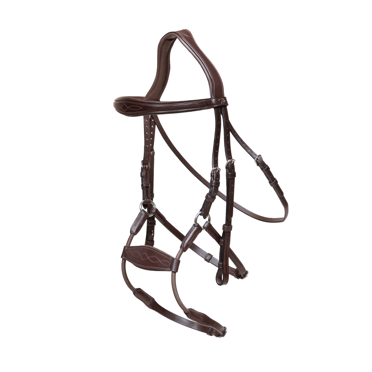Every detail of this bridle is designed for horse comfort and rider effectiveness. The hybrid noseband with elastic protects the facial nerves, maintaining stability while avoiding unnecessary restriction or pinching. The S-shaped headpiece allows for natural ear movement, reducing tension and promoting a relaxed, willing connection. Combined with high-quality leather and expert craftsmanship, this bridle is a must-have for riders seeking performance, comfort, and flexibility.