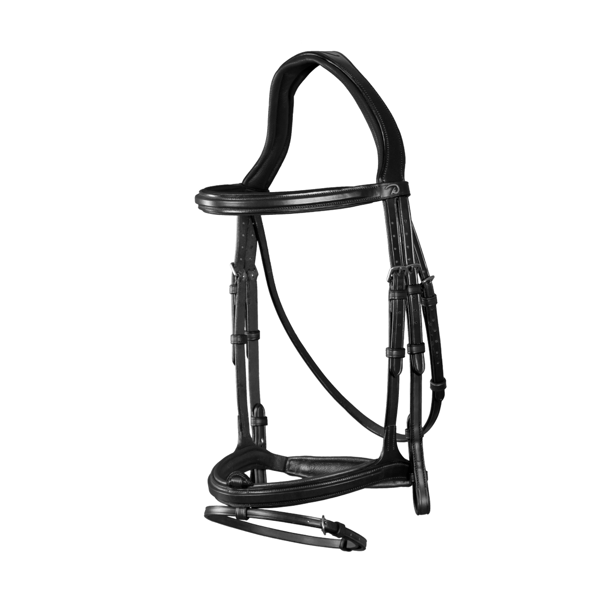 This classic flash noseband bridle offers the perfect balance of versatility, elegance, and comfort. Its 2-in-1 functionality allows riders to easily switch between a flash noseband for added control and a cavesson for a more traditional look, making it an ideal choice for various disciplines. The timeless design ensures a refined appearance in any setting, whether in the show ring or during everyday training. Designed with anatomical comfort in mind, the soft padding and carefully shaped headpiece help distribute pressure evenly, enhancing the horse’s well-being.