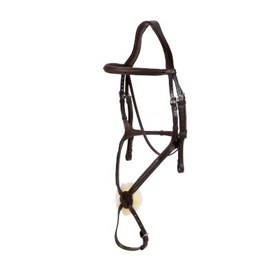 The bridle is part of the New English collection, which means the color of the stitching matches the color of the bridle. The buckles are stainless-steel. There are plaited leather details on noseband and browband. Available in brown and black.
