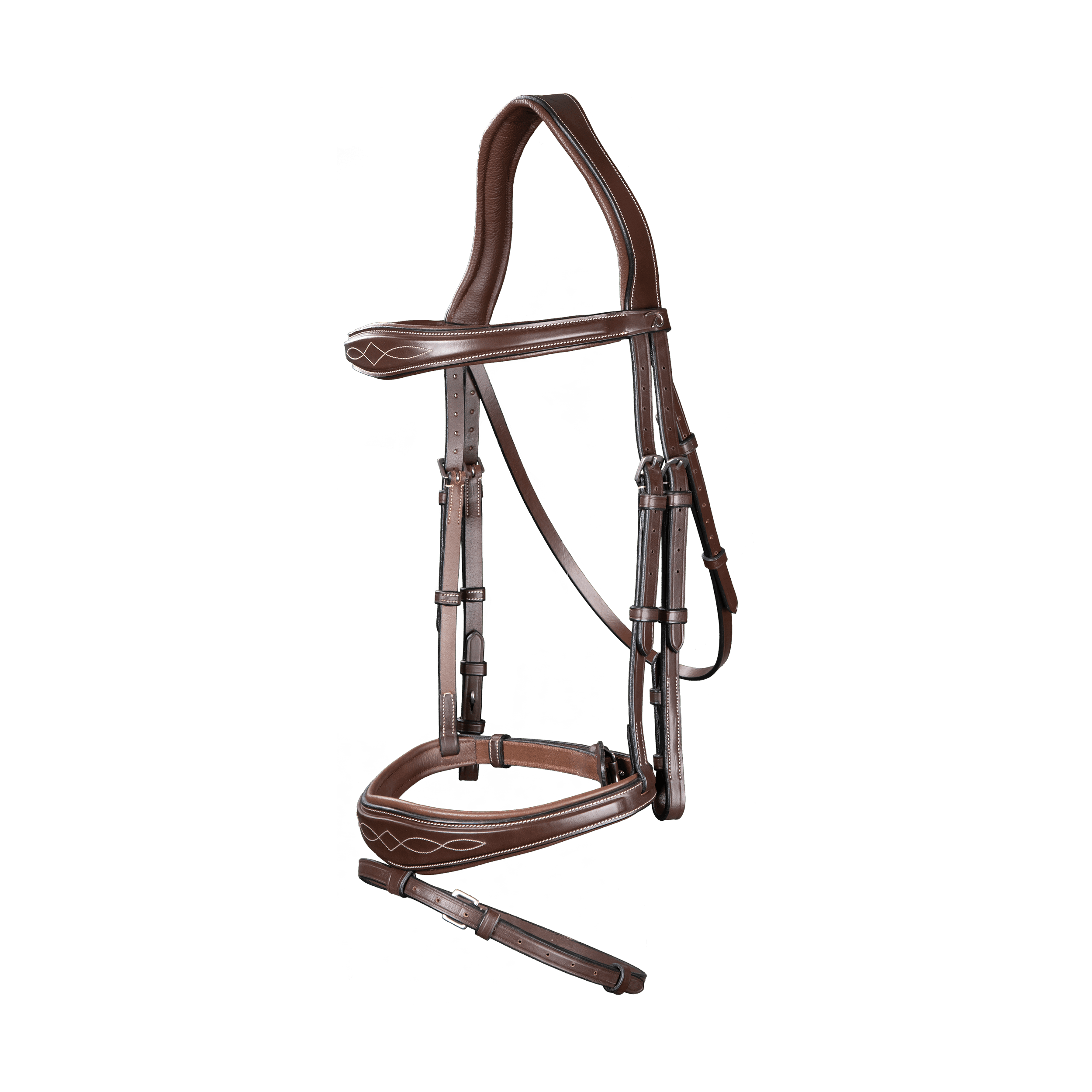 The Anatomic Flash Noseband Bridle is instantly recognizable for its timeless elegance and high-performance design. Whether seen from afar or up close, its subtly broadened noseband and browband create a distinctive, polished look that exudes class. Designed for ultimate horse comfort, the anatomical shape reduces pressure on sensitive areas, ensuring optimal fit and stability during training and competition.