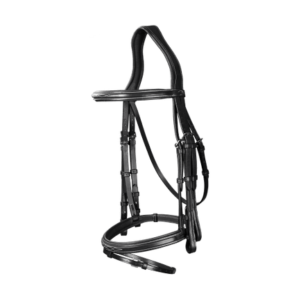 • Slightly square-raised noseband and browband with decorative topstitching