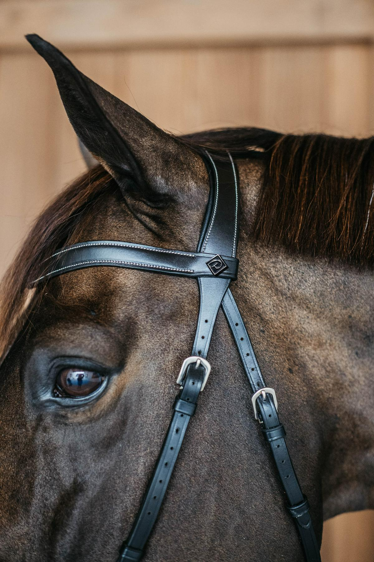 Featuring an anatomic headpiece and an extra-soft browband, this bridle prioritizes the comfort of your horse's infraorbital foramina (maxillary nerve passages).