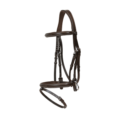 The bridle features cream stitching and stainless steel buckles. The noseband and browband are decorated with fancy stitching for a stylish and elegant look. Available in brown and black.