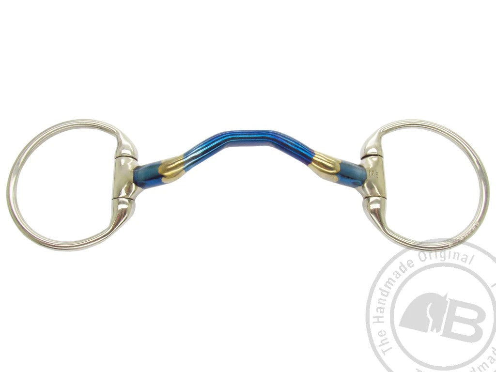 The Bombers Bits Eggbutt Happy Tongue offers a thoughtfully designed cheekpiece that prevents lip pinching and provides a stable feel against the face. This configuration also minimizes the likelihood of the bit being pulled through the mouth during use. Compared to the loose ring, the Eggbutt style offers a slower release and introduces gentle pressure to the poll. The Happy Tongue features a solid, curved, and ported mouthpiece, ensuring relief and comfort for the horse's tongue while riding.