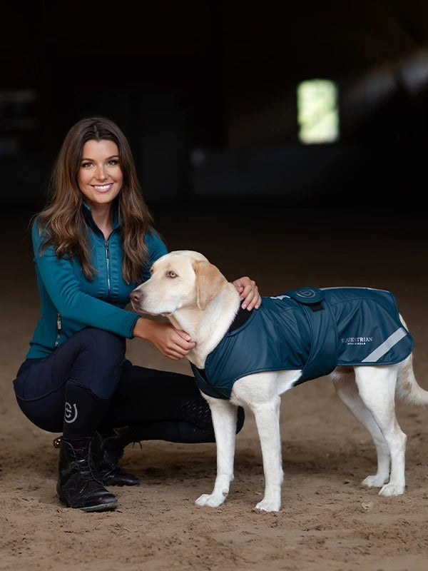Our exclusive weather pro dog rug in stylish blue with a touch of green. Designed in high quality waterproof and durable outer material with a cosy fleece on the inside. This will ensure to keep your dog dry and warm so they could enjoy outdoors even on the rainy days. Decorated with reflective details to keep your best friend visible and safe in the dark. Enchanced with an elastic band in the front for a comfortable fit even when being highly active. The rug is made with an in-built leash hole, elastic bands for leg attachment and an adjustable velcro fastener to make it practical and convenient The rug comes in a wide size range which makes it a perfect fit for both smaller and larger dogs alike.