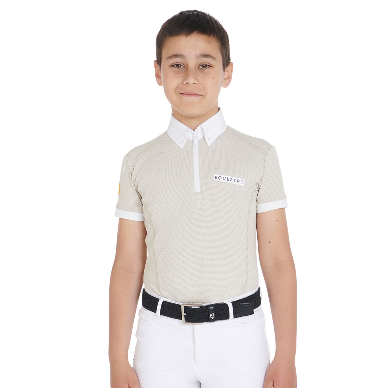 Boys' slim fit polo shirt in stretch and breathable perforated mesh technical fabric with half sleeves. Practical and fresh garment.