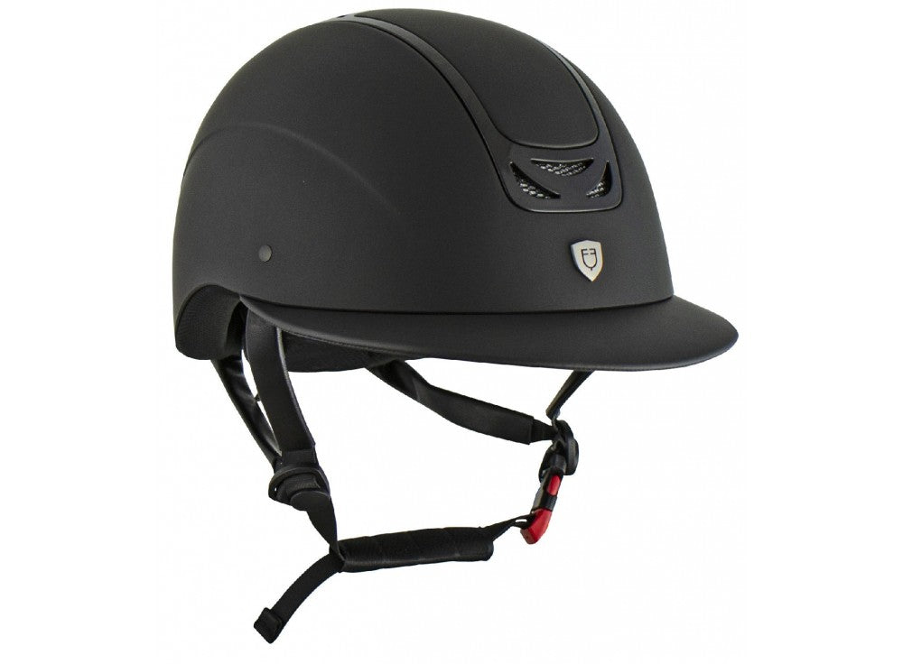The outer shell is made of plastic, velvet effect, with front and rear air intakes. Decorated with Equestro logo plate.