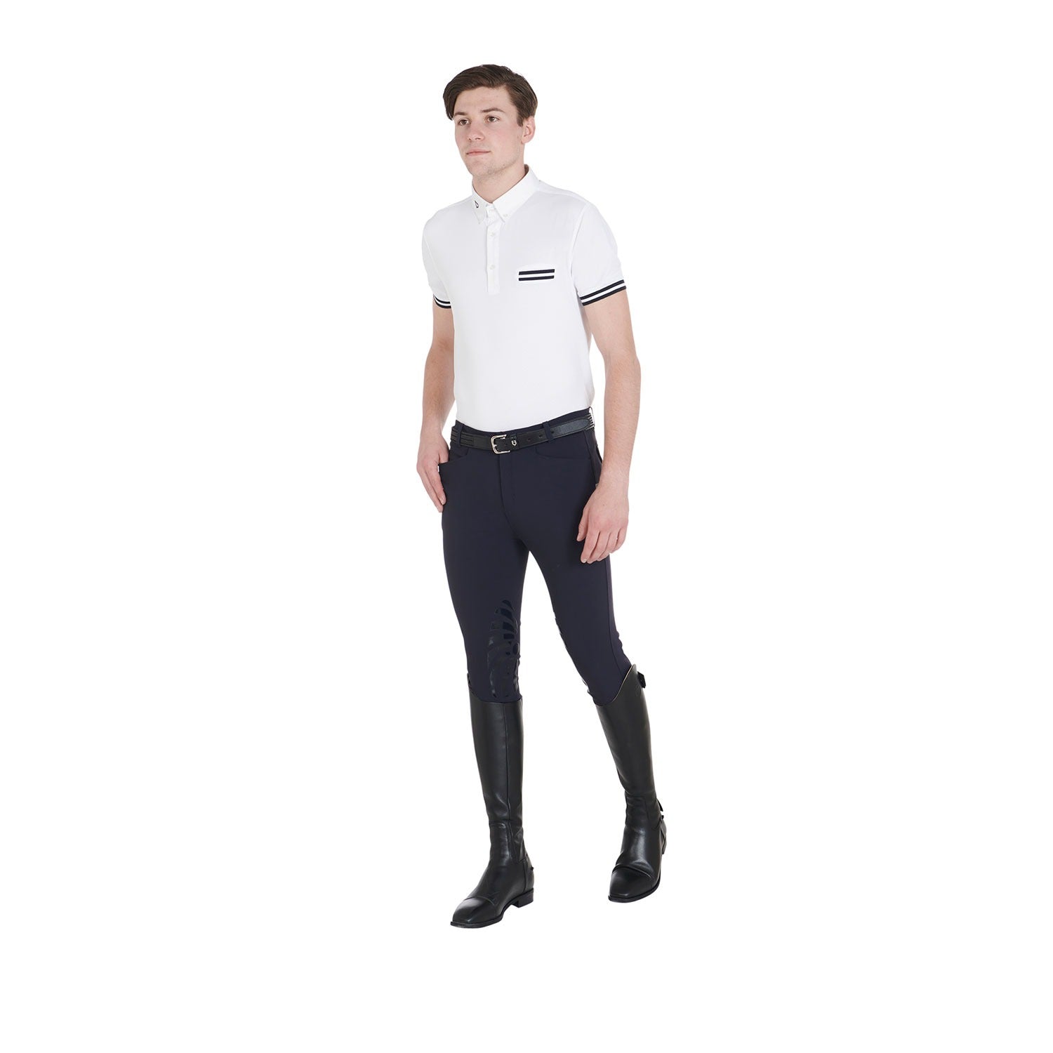 Men's Hermes slim fit breeches with silicone grip inside the knee. The two-way stretch technical fabric guarantees maximum comfort.