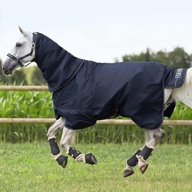 Introducing the Eskadron Omega 250g, the epitome of equine comfort and protection. With a detachable neck part and a surface crafted from 1680 Denier material, this blanket is built to withstand the rigors of equestrian life. Boasting a WP/5.000 mm/H2O waterproofness rating, it ensures your horse stays dry and comfortable even in challenging weather conditions.