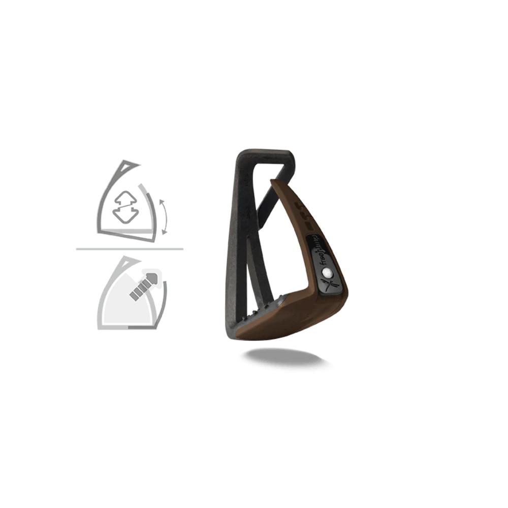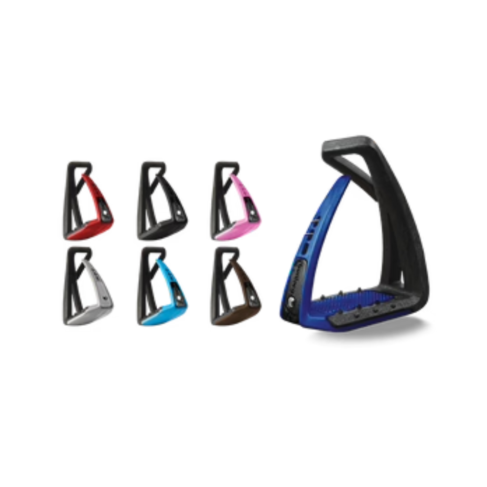 Single-branch stirrups reduced in size (footwear up to 39) designed after the SOFT’UP PRO. The SOFT’UP LITE features a new flexible outer branch which helps to free the foot in case of a fall. A removable PIN’S is attached to the mini branch to customize the SOFT’UP LITE (colors, print or flags)