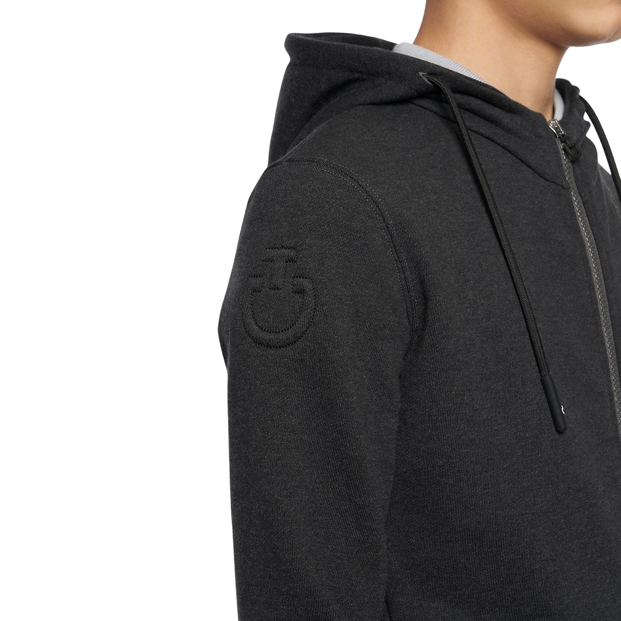 This hooded zip sweatshirt goes beyond the arena, offering everyday chic for young trendsetters. Adorned with various CT logos, it seamlessly blends equestrian flair with contemporary style. The elastic cuffs and waistband add a touch of sophistication, making it a versatile wardrobe essential.