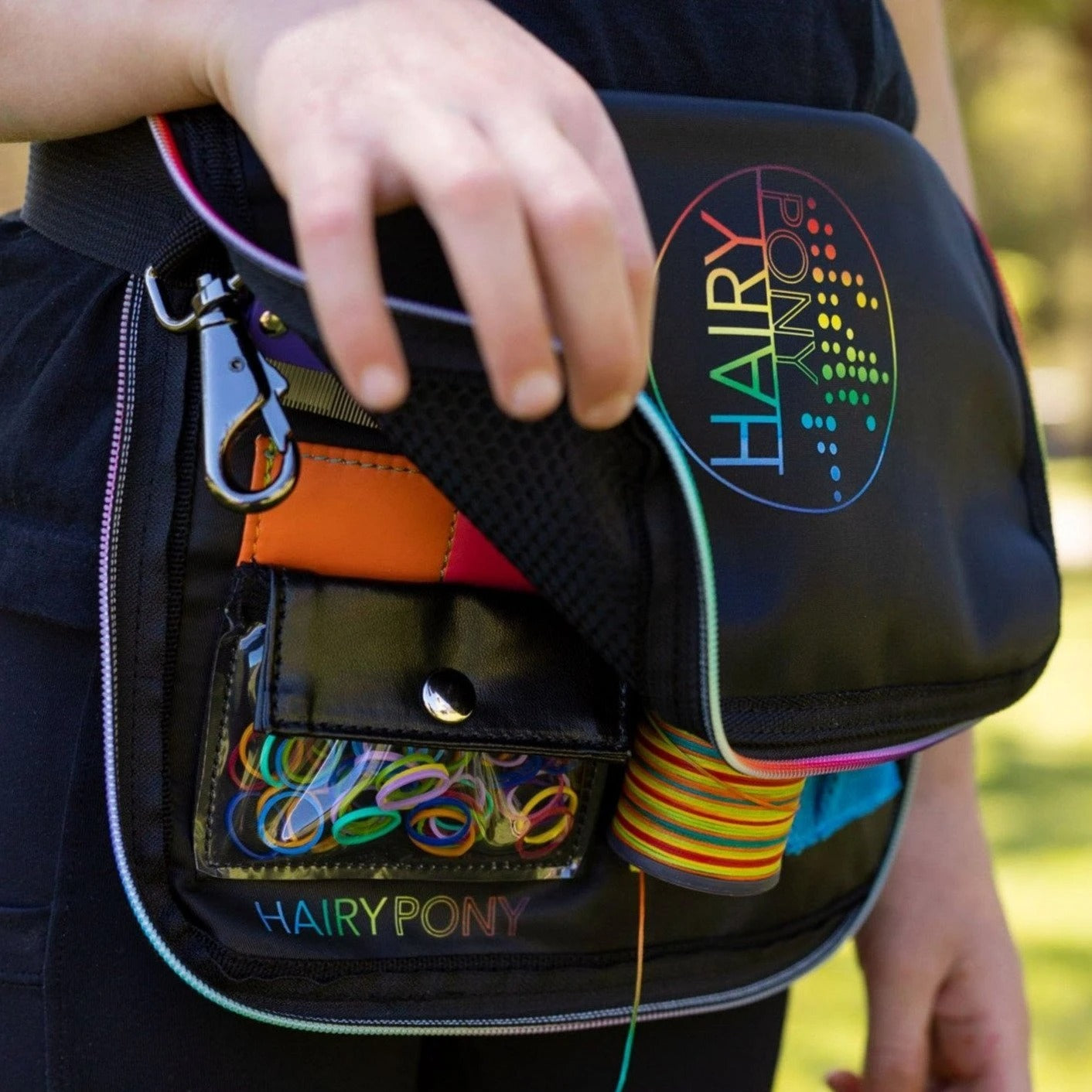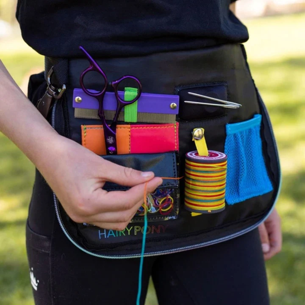 Made from the same durable material as our HAIRY PONY PLAITING APRON, with colourful rainbow accents, our HAIRY PONY KIDS PLAITING APRON includes all of your favourite features from our flagship apron, including comb slots, mesh & material pockets, thread reel & magnetic needle cushion.