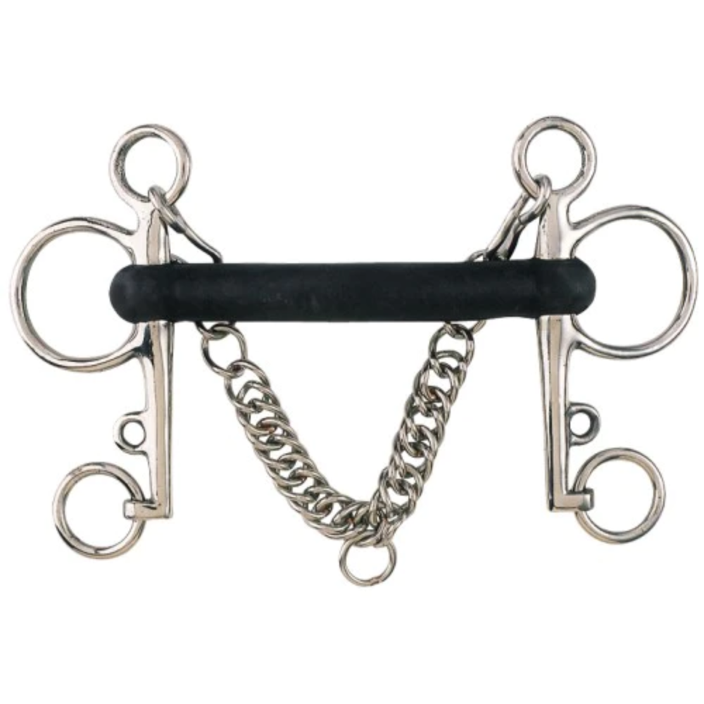 • The mouthpiece is solid steel covered by hard rubber.• Stainless steel bit.