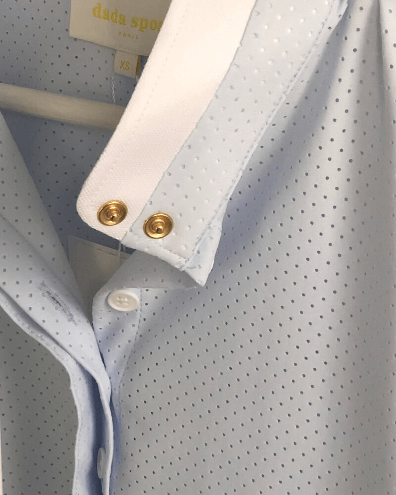 The design of the polo shirt is very pure: the buttons are hidden under a button placket.