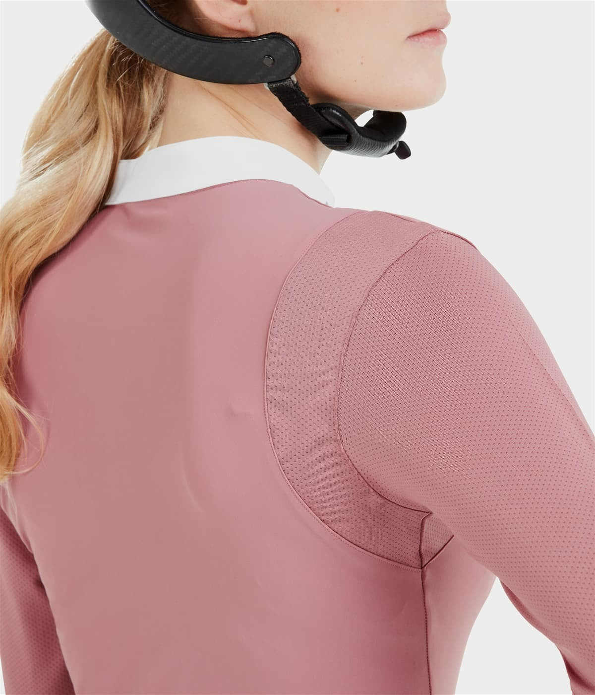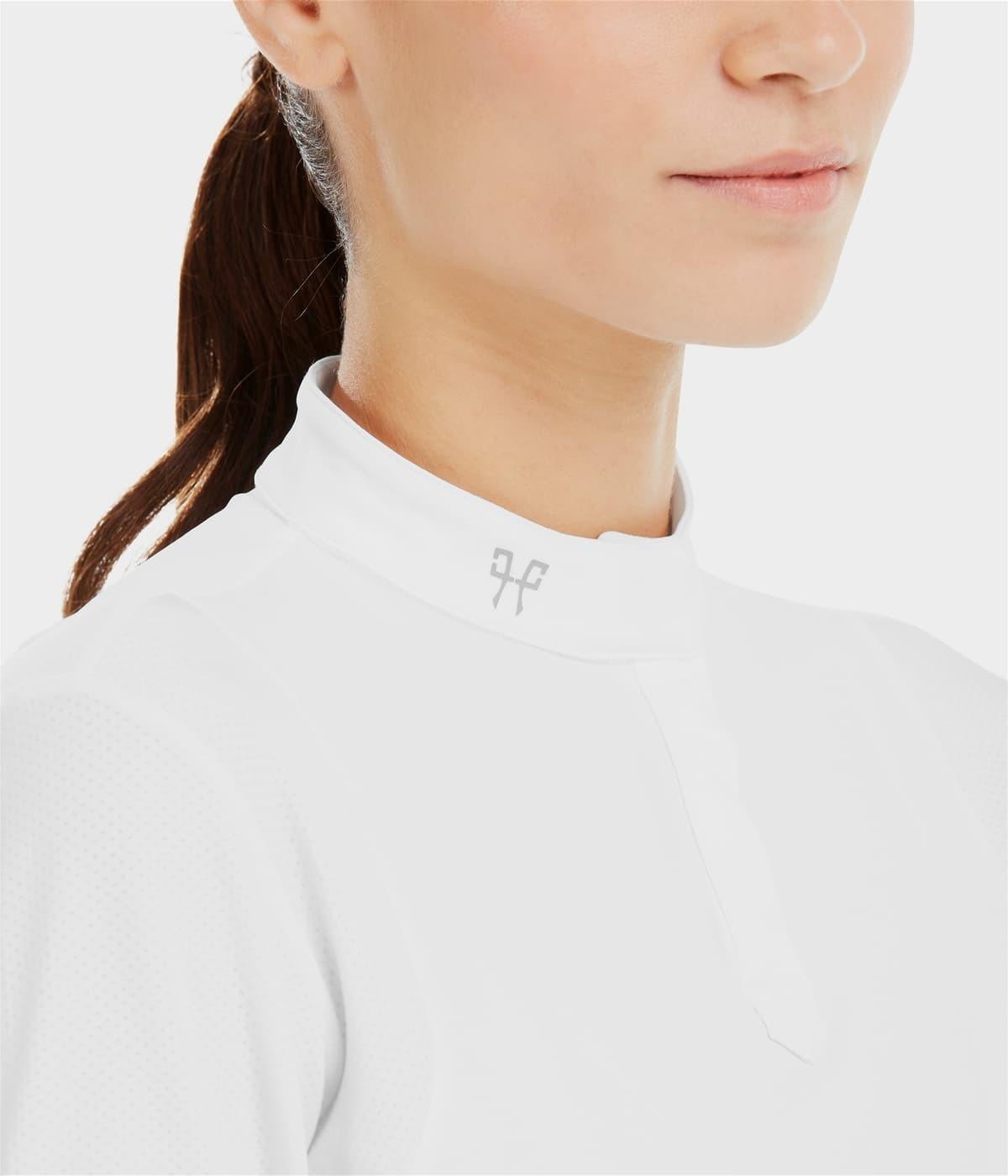 Dual-stretch with ergonomic cut-outs, the Aerolight shirt has been designed to give riders optimum freedom of movement. The shape of the wrist has been designed so that the rider can move freely on horseback. The neckline meets competition requirements and opens with a magnetic button for a minimalist look.