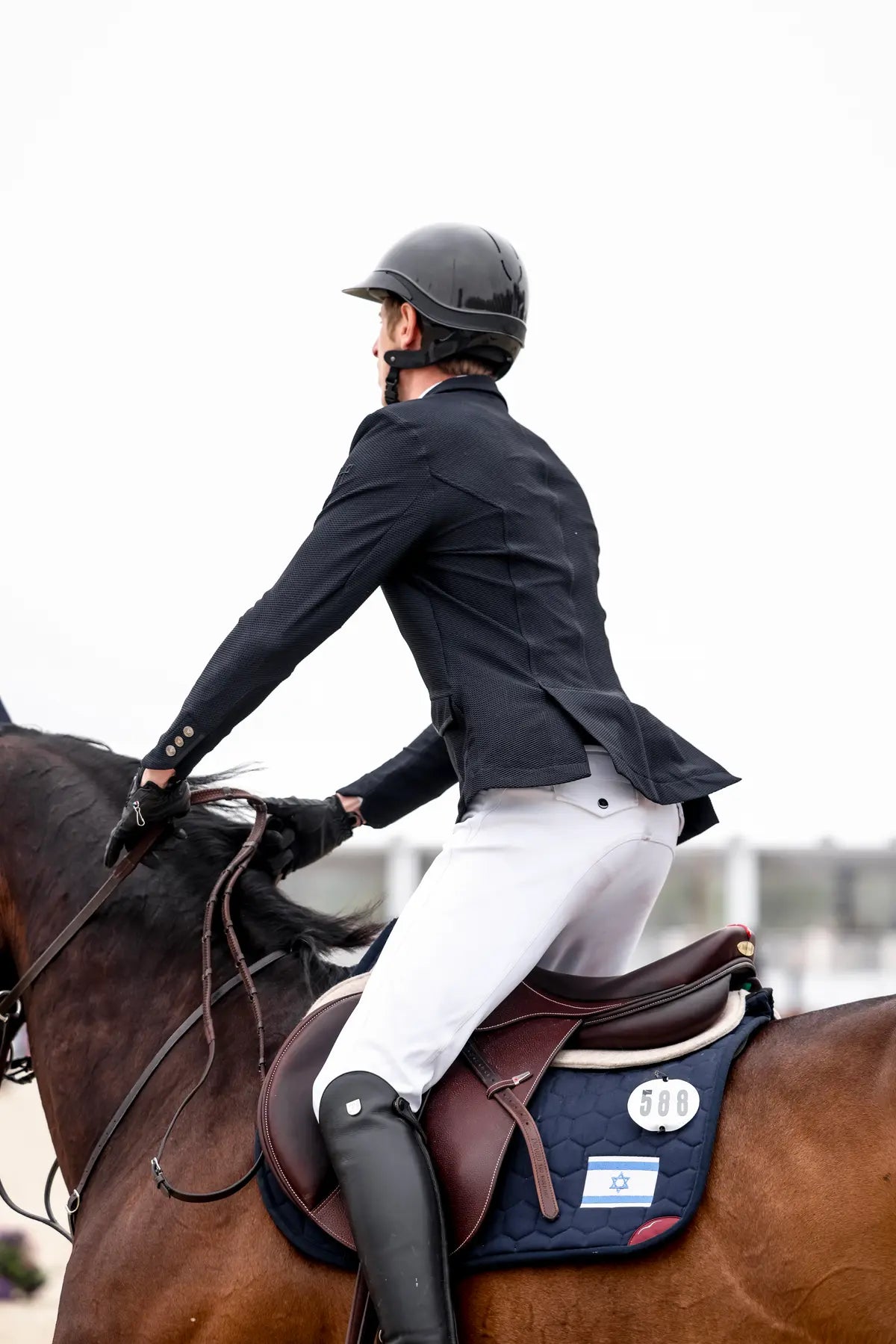 Because our sport is an art of precision where every movement counts, the shape adapts to the rider’s posture on horseback. The cut-outs are ergonomically shaped and the sleeves are pre-shaped to ensure optimum ease of movement without getting in your way. The two-way stretch fabric is supple and highly breathable. Its honeycomb structure ensures effective heat dissipation during intense exertion in hot weather. In addition to its technical qualities, this jacket has all the aesthetic details you need for competition riding: a tailored collar, a discreet tone-on-tone logo and Fidlock® buttons for fast, secure fastening. Like the Aeromade jacket, the Aeromesh jacket is compatible with our line of airbags.
