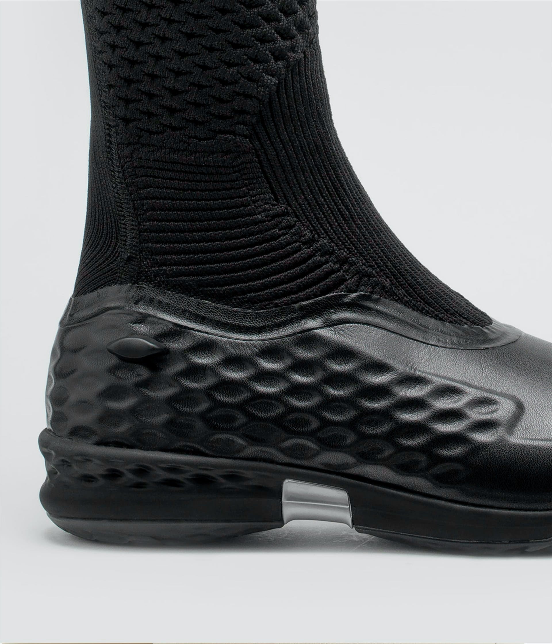 The Teknit boot offers the comfort of a pair of sneakers while guaranteeing excellent foot and leg support. The highly stretchable and breathable 3D KNIT technology allows the boot to adapt to all leg anatomy with a tailored look. The stability arch built into the sole stabilizes the foot and redistributes energy from the stirrup to the center of the foot. Foot comfort is guaranteed by a shock-absorbing EVA sole and an anatomical cradle in the heel. A 2-layer grip at the calf level provides good leg stability and protects this area from abrasion.