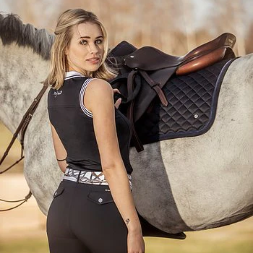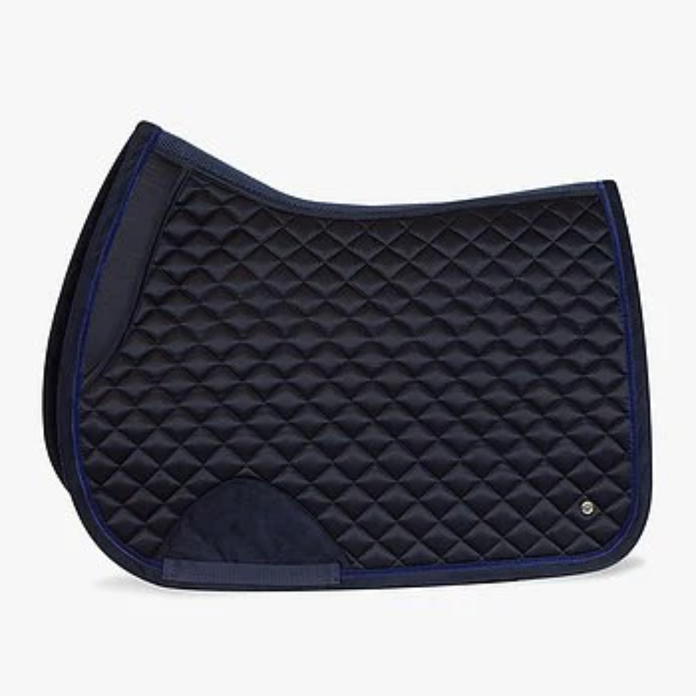 ”We adore this elegant saddle pad with its eye-catching velvet piping. It has a timeless and classic look but truly stands out with all the unique details."