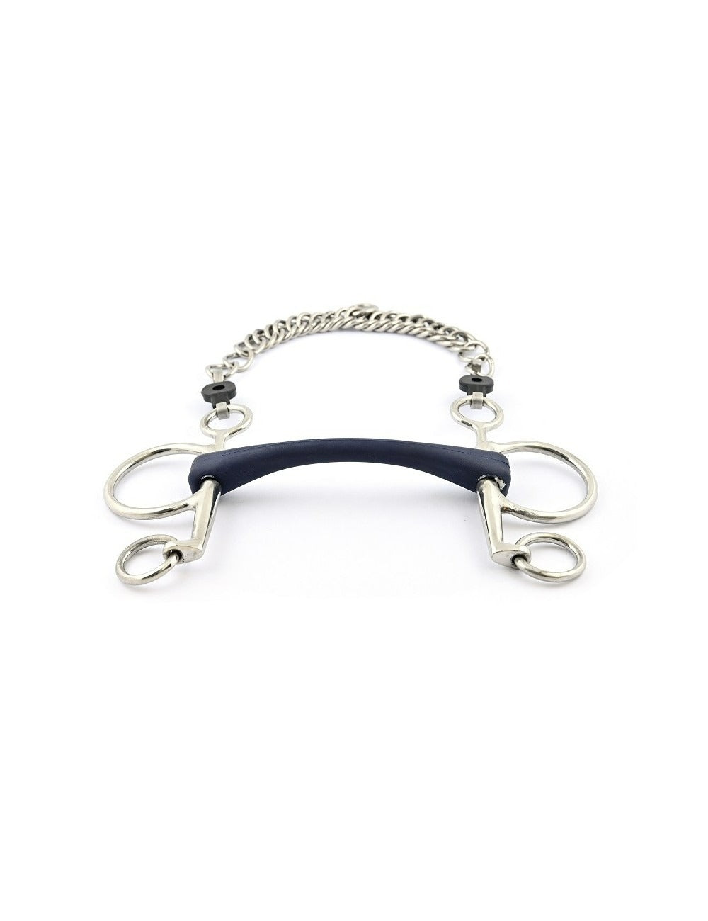 Tips: every Pelham bit can be used directly with two reins, with bit loops, or with four reins. Therefore, the curb chain action can be softened by using other curb chain types as leather or nylon. The straight flexible cannon helps horses to take good contact on the bit so it also helps them stretch their back-lines while working.