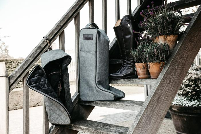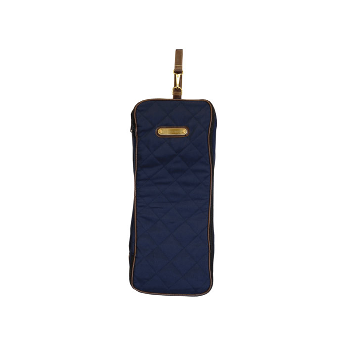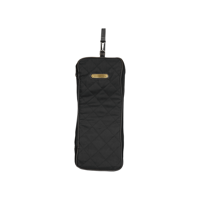 The Kentucky Horsewear Bridle Bag offers protection to your bridles during transportation, at shows or at home. The Bridle Bag has artificial rabbit skin on the inside to avoid scratches on the leather. It features a hook on the inside to easily attach your bridle. The name tag on the front can be turned over to be personalized. The Bridle Bag can be attached to anything thanks to the hook & ring on the top. It has the same diamond quilting that our stable set (curtain, guard, head protector) and our rugs! Therefore, this Bridle Bag tops of the Kentucky show look. It is machine washable at 30°, no dryer.
