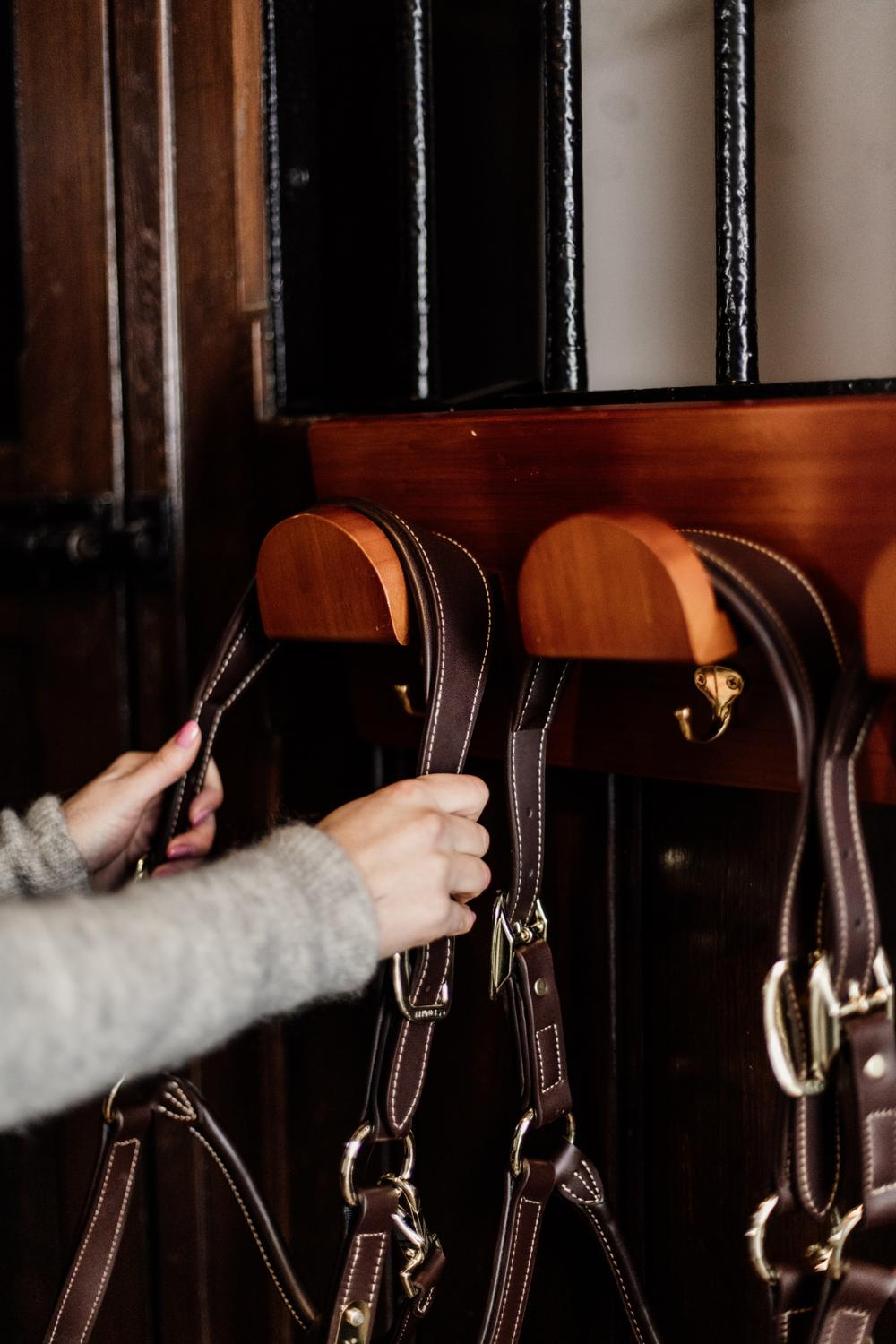 This Bridle Rack will soon become a must have in your tack room! It is made out of bamboo which makes it extra resistant and easy to clean. It gives you space to hang 5 bridles or halters. The 5 extra golden hooks give this rack a classy look, as long as the possibility to hand breastplates or leads. Combine style and organization for all your products with this fancy Bridle Rack!