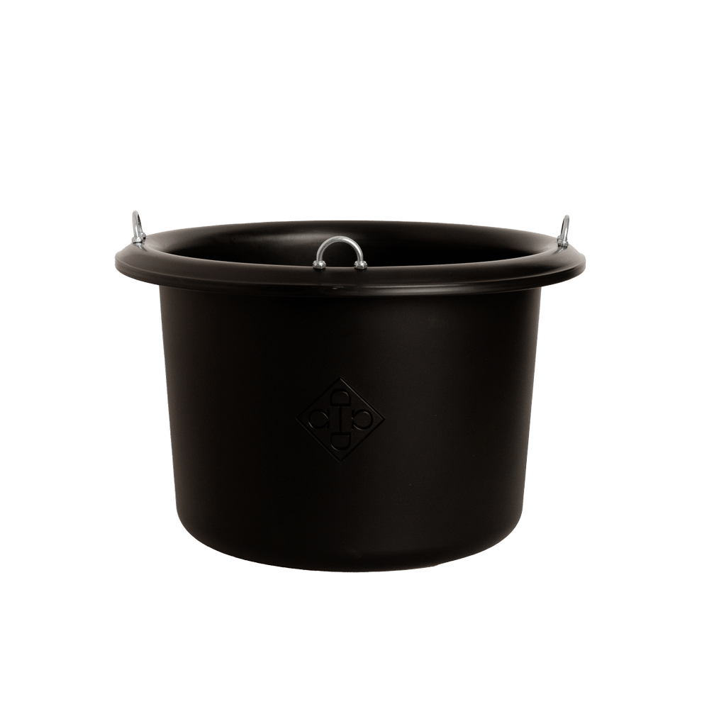 This feed bucket is not just about durability; it’s about practical elegance. The matte finish paired with the discreet Grooming Deluxe logo creates a polished look, while the three sturdy metal loops ensure it stays securely in place, even in busy stable environments.