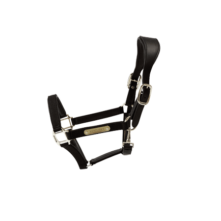 The halter is available in size full and COB. The neckpiece is anatomically shaped for more comfort. To adjust the halter, you can use the 2 buckles on the side of the neckpiece. The nameplate on the halter can be turned over and engraved with the name of your horse.