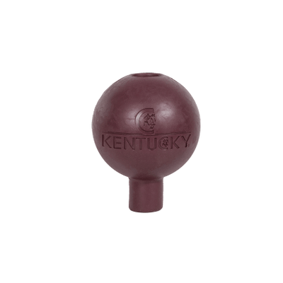 The Rubber ball protection wall & lead is available in one universal size that fits on most leads. The Rubber Ball has two little holes on the hole facing outwards to reinforce the ball with a zip tie to avoid moving if needed. It features a big Kentucky logo on one side.