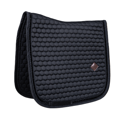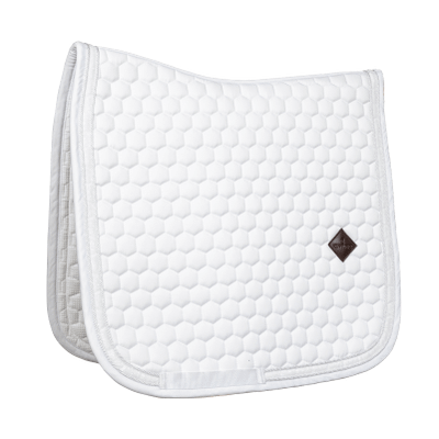 Crafted from a honeycomb pattern cotton-polyester blend fabric which Is quick-drying, this saddle pad ensures your horse stays comfortable even during intense training sessions. The inner padding is breathable, providing effective cushioning between the saddle and your horse’s back. The stitched Kentucky logo, made from premium vegan leather, showcases Kentucky quality from afar.