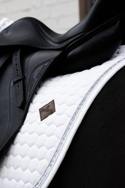 With its striking glitter band, the unique-styled Saddle Pad Glitter Band adds a touch of elegance to your horse. Its exclusive design catches the eye, whether you’re training or competing. Additionally, it offers ample space for custom embroidery, allowing you to add a personal touch.