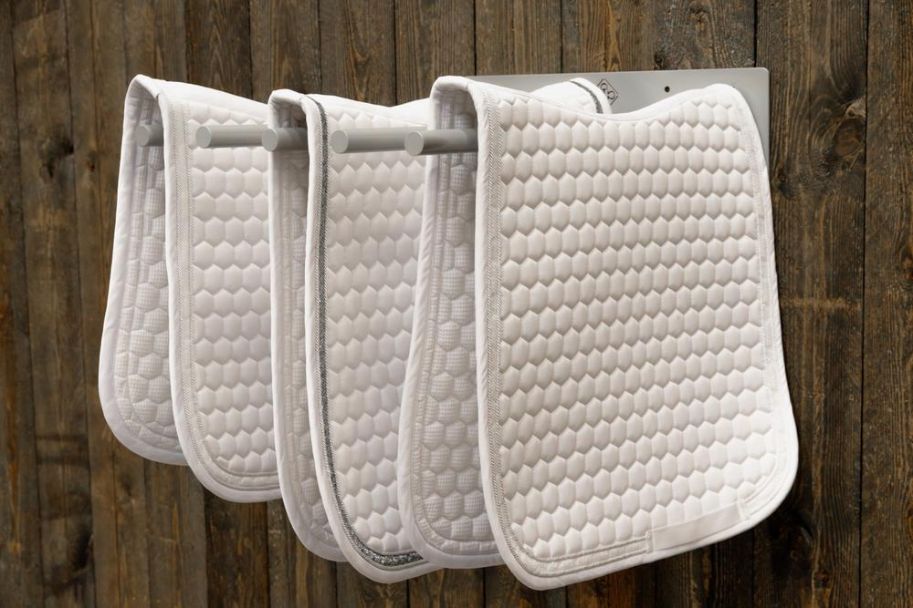 - Space-Saving Design: Holds up to 5 saddle pads for easy organization.