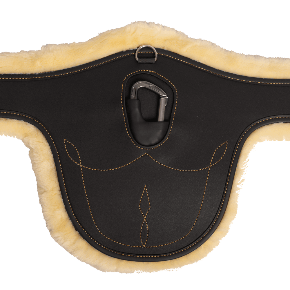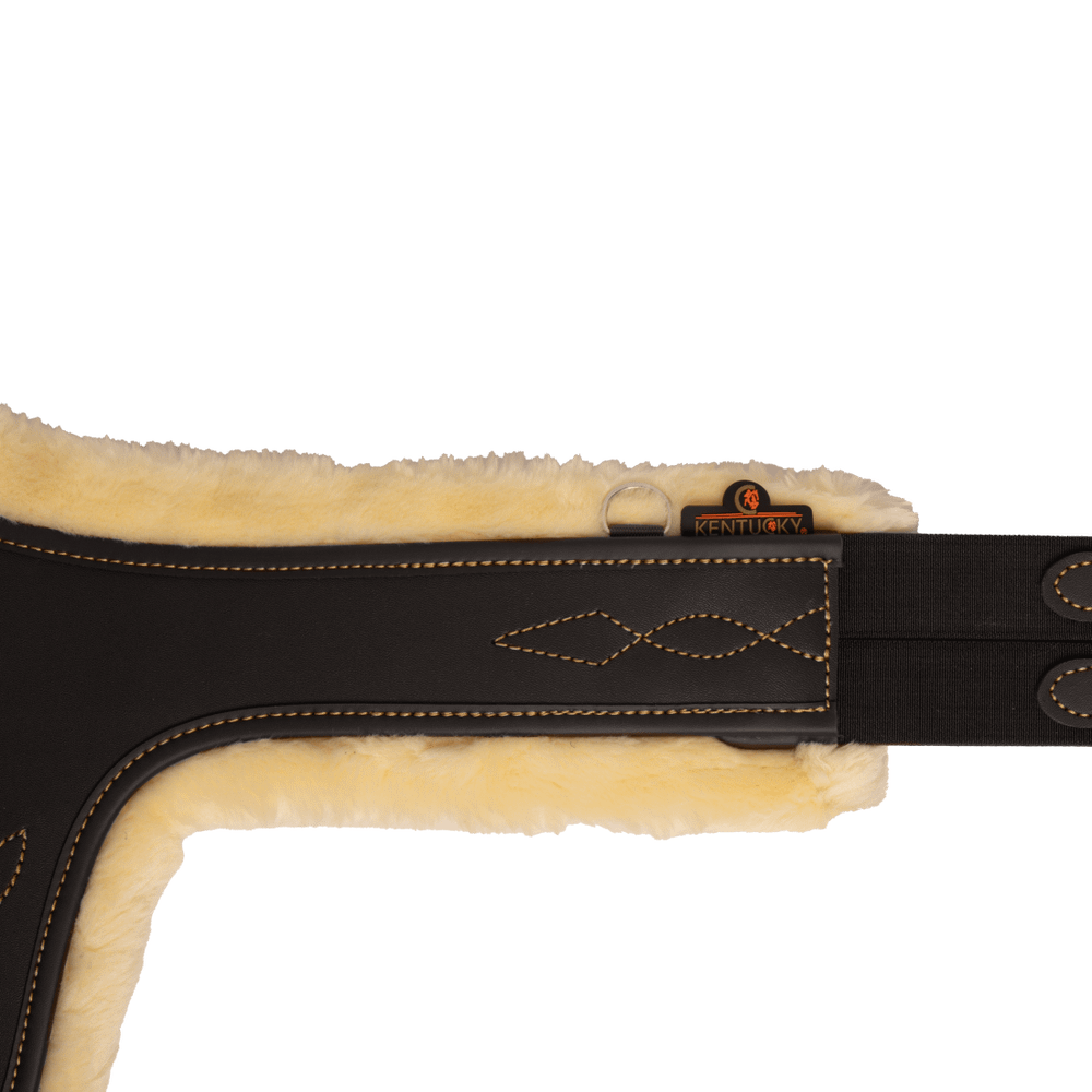 In addition to the wide protective plate, the Kentucky Horsewear Sheepskin Stud Girth is anatomically shaped offering comfort and safety when jumping while limiting the risk of injuries caused by horseshoes or studs. Specially shaped to follow the horse’s natural movement, it relieves the shoulders and elbows. It features elastics on both ends to equalize pressure as well as three D-rings to accommodate schooling equipment and a buckle to attach the breastplate to the girth. The elastics are strong and stay firm as they are three double made. The artificial sheepskin offers excellent cushioning against sensitive skin and like artificial leather, it is easy to maintain as it is specially made to sustain the washing machine at 30° (no dryer). Thanks to the Velcro on the other side of the sheepskin cover, it can be easily taken off and changed. This Sheepskin Stud Girth is made out of artificial leather that doesn’t take in any dirt, sweat or water and is therefore more durable. Moreover, it does not change color and does not get damaged easily.
