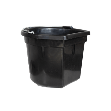 The unique flat-sided design of this bucket ensures it stays securely in place when hung, preventing tipping and reducing mess. This makes it an ideal choice for active horses or for use in tight spaces within stables. Additionally, the crimped ends of the handle have a special part that saves the mane and tail to be trapped In.