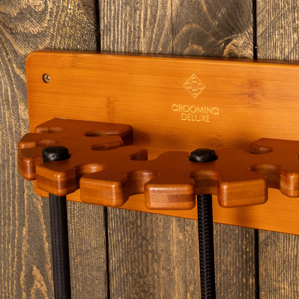 A stylish and efficient solution to keep your whips organized and easily accessible. Made from ultra-resistant bamboo, this whip holder combines functionality with a sleek, compact design, perfect for any equestrian space.