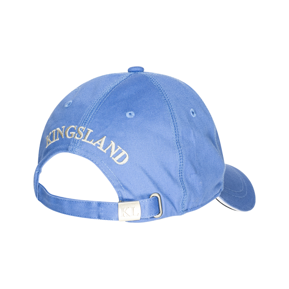 Our Classic Cap is both sporty and elegant. It has an adjustable strap with a Kingsland logo buckle. There are embroidered Kingsland logos on the front and back. Plus, it features a contrasting fabric under the brim with matching piping.