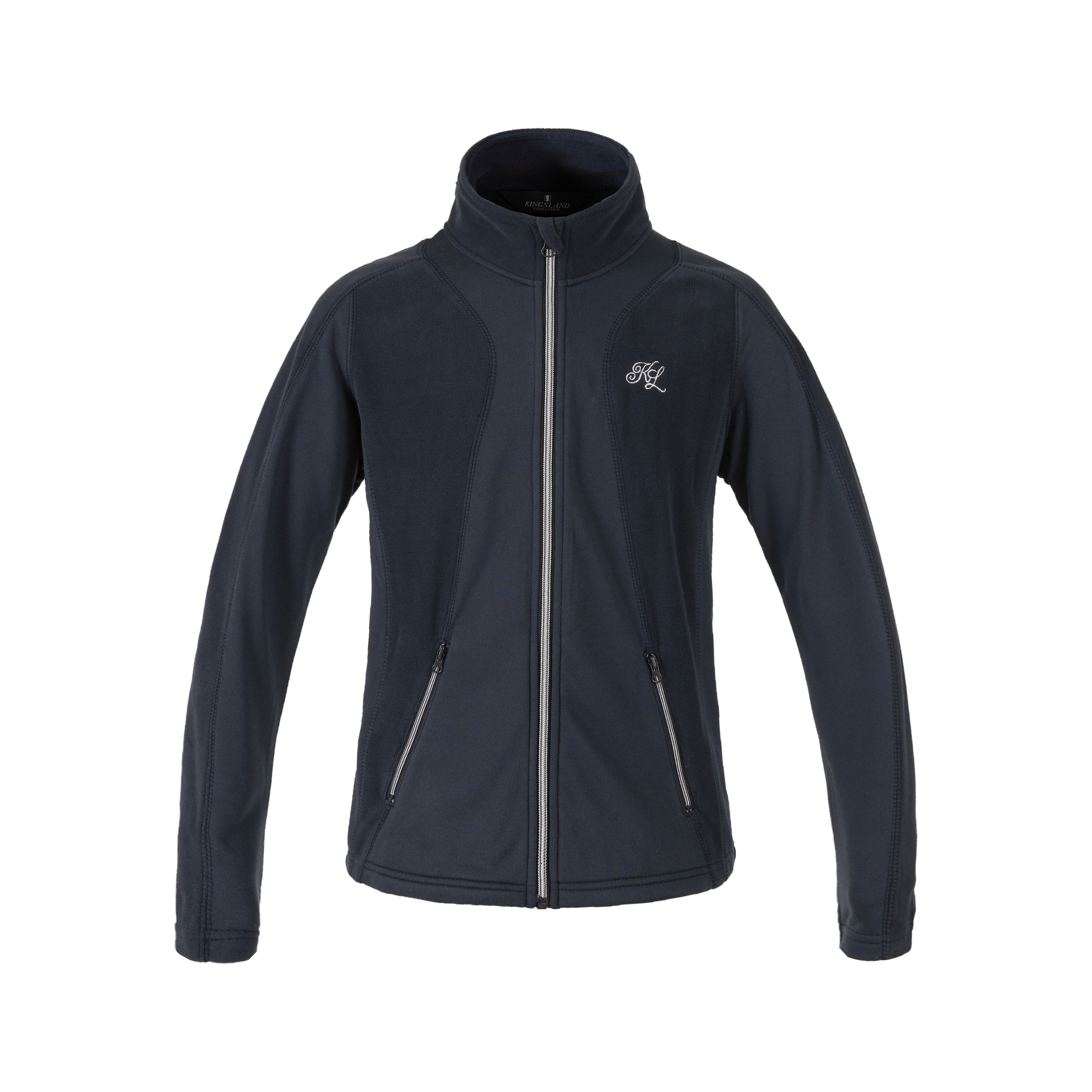 The Kingsland Elissa Fleece Jacket is made of smooth fleece. On the back is the Kingsland logo and the Jacket has zippered pockets.