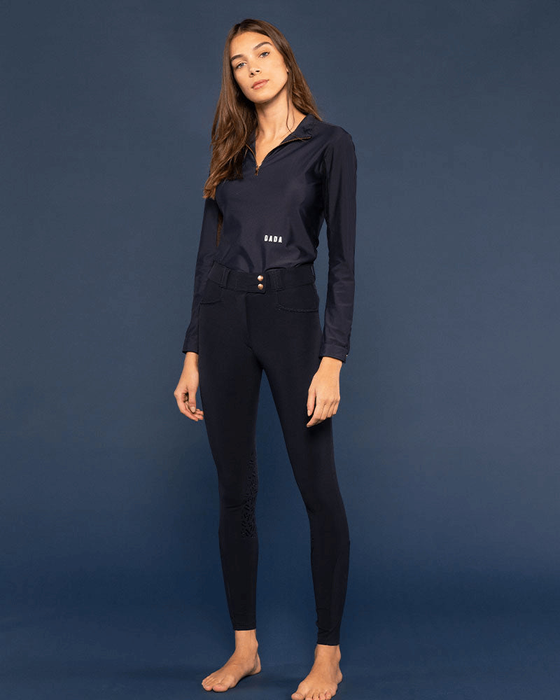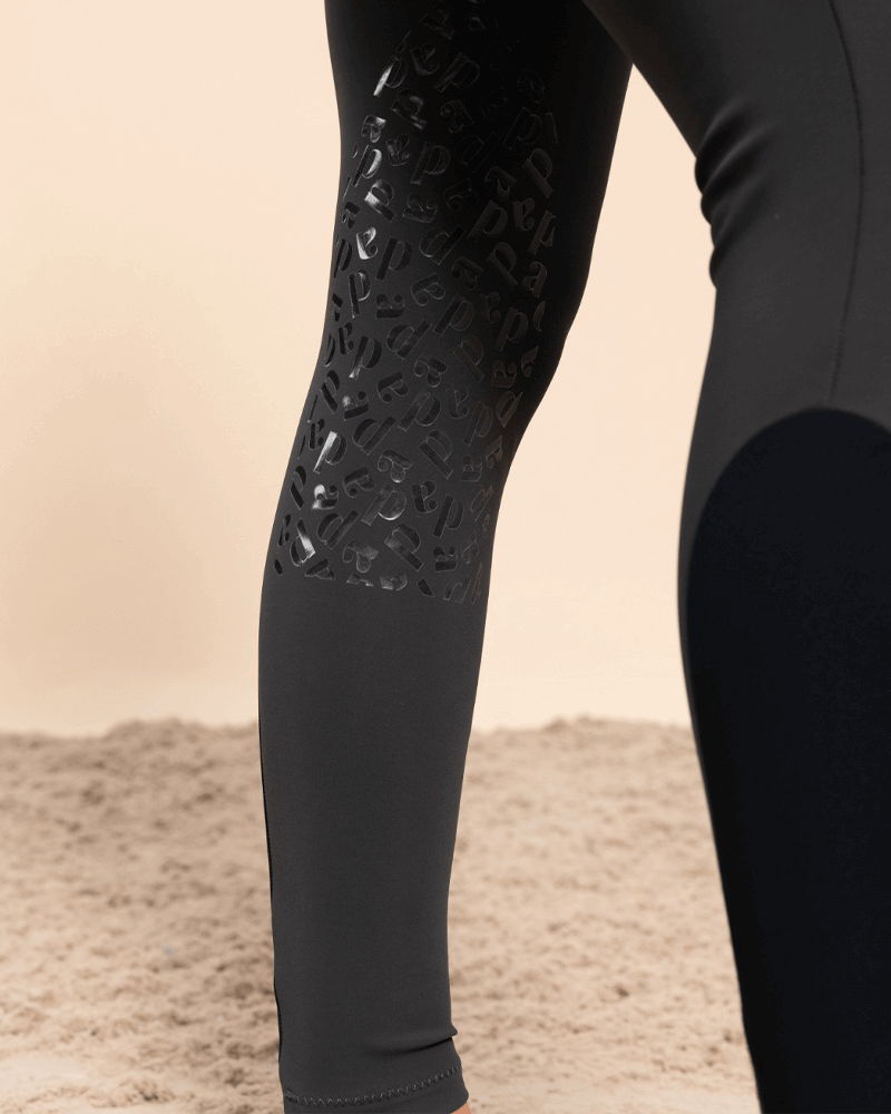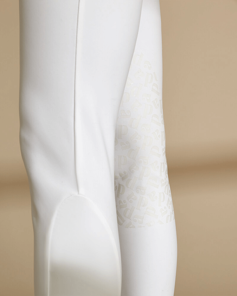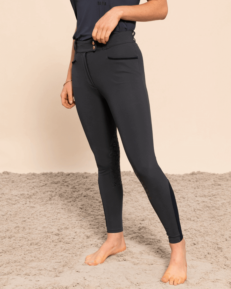 Transparent dada grip patches on the knees for better stability in the saddle.