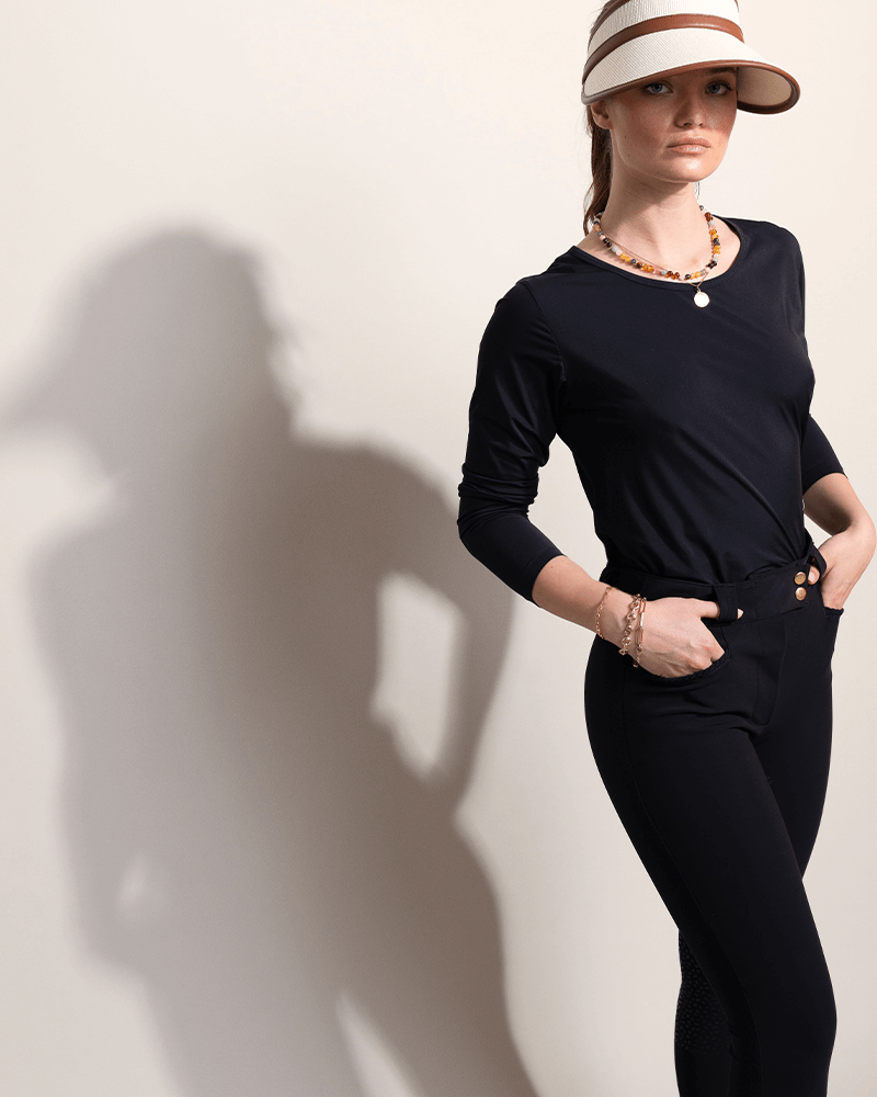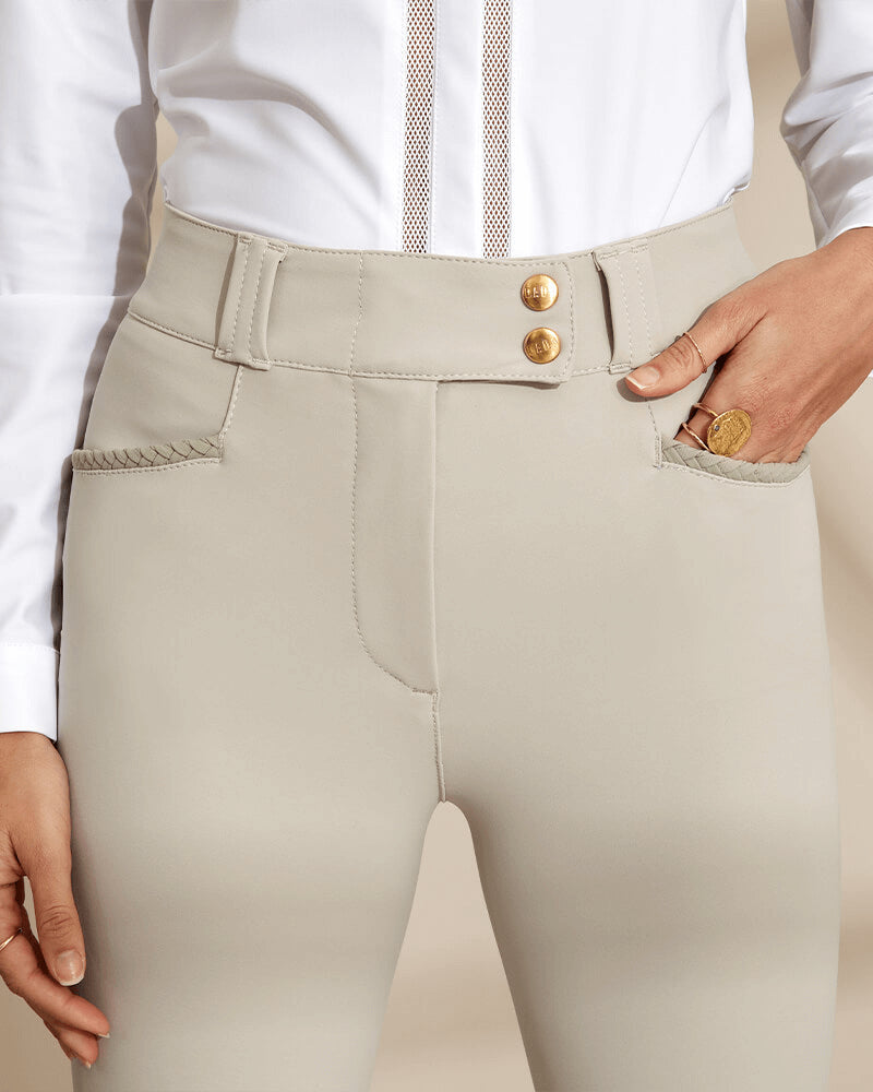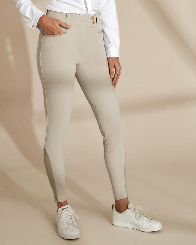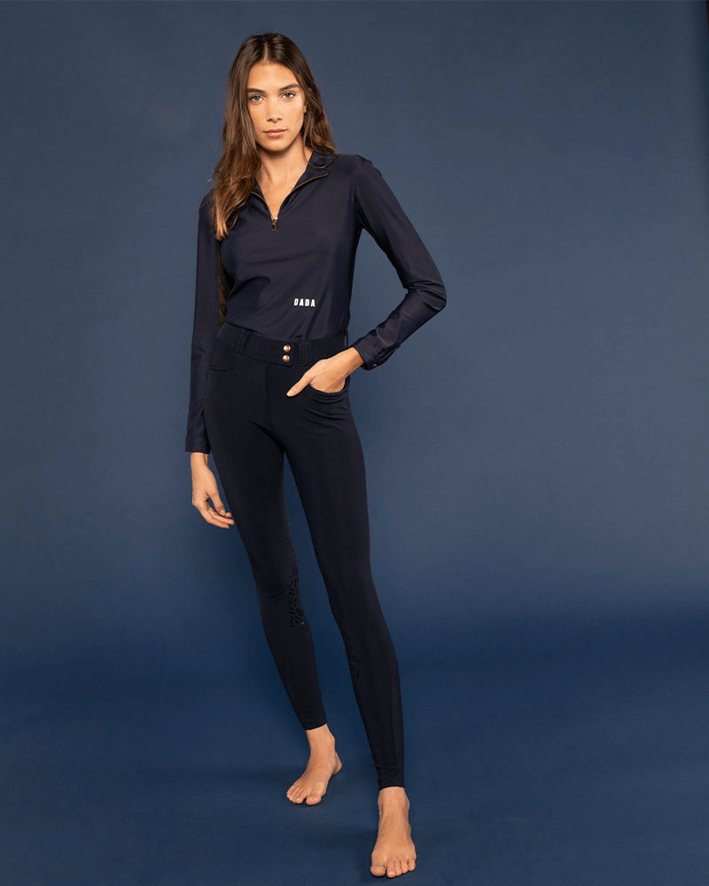 Transparent dada grip patches on the knees for better stability in the saddle.