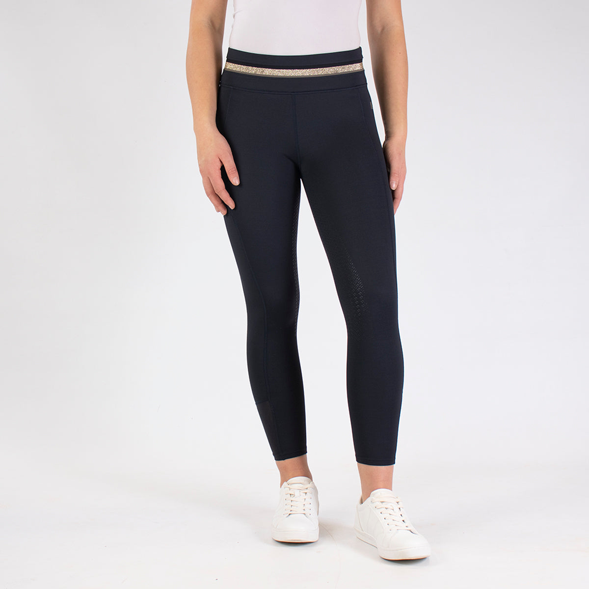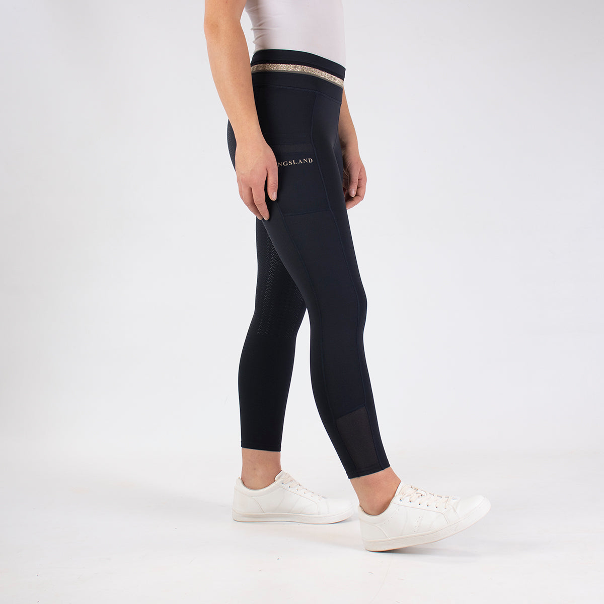 Sporty and fancy riding tights for kids from Kingsland with amazingly breathable and quick-drying properties. The riding tights offer a high degree of comfort, have a comfortable high waist with shiny stripe and a full seat of silicone grip