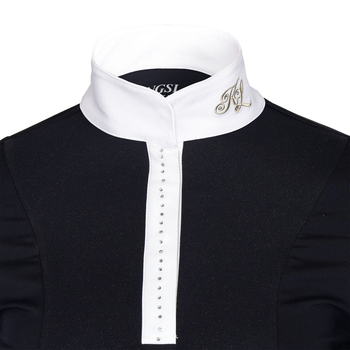 The show shirt KLNorinne from the winter collection of Kingsland is the perfect addition to your perfect show outfit and is made of recycled material. The show shirt is quick-drying, breathable and moisture-wicking and is decorated with pretty details, logos and crystals.