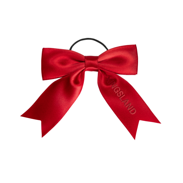 Kingsland tail warning bow, an essential safety accessory for horses with a tendency to kick. This bow has an elastic band for secure attachment.