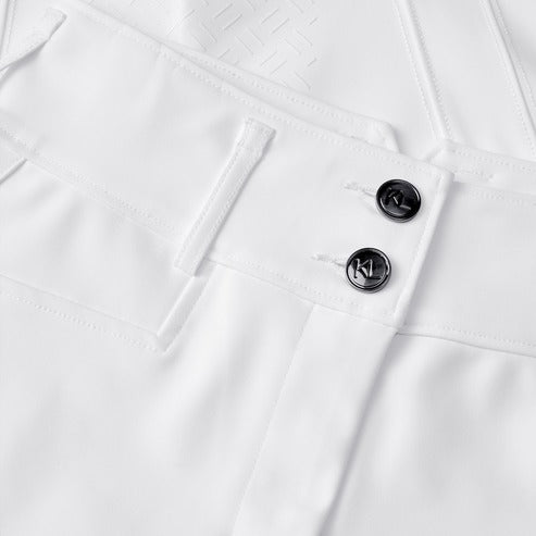 Our H-shape full grip breeches offer support and comfort in the saddle. Crafted from breathable yet robust fabric, they deliver excellent compression and a high-density structure for enhanced durability. Their H-shape design creates a sleek silhouette, perfect for riders with a narrow upper body and hips, delivering a tailored fit. The breeches are boosted by a Tanatex® anti-dust and water-repellent treatment for extra protection and a hassle-free ride. An elegant KL logo detailing adorns the left leg and is embellished with crystals by Swarovski® for a touch of sparkly elegance.