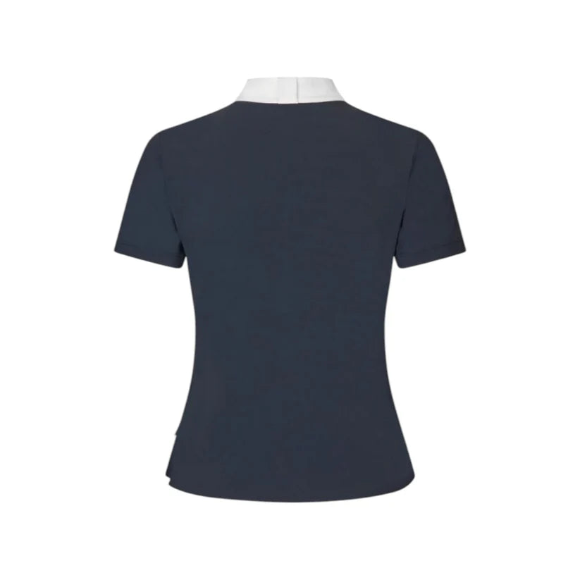 A modern take on a traditional, elegant show shirt with a convenient 6-button front closure for effortless dressing without compromising on hair or makeup. This show shirt is exceptionally breathable and perfect for summer shows, ensuring you stay comfortable while looking polished. The fabric actively regulates your body temperature, keeping you cool no matter how hot the days get.This show shirt fits smoothly under your show jacket, avoiding wrinkles and giving you a polished look. The shirt’s 4-way stretch fabric ensures you can move freely in the saddle without any restrictions. Its anti-bacterial and anti-odor features keep you fresh, comfortable, and ready for the show ring. The elegance of this shirt is accentuated by the 4 top buttons of the closure embellished with crystals from Swarovski®.