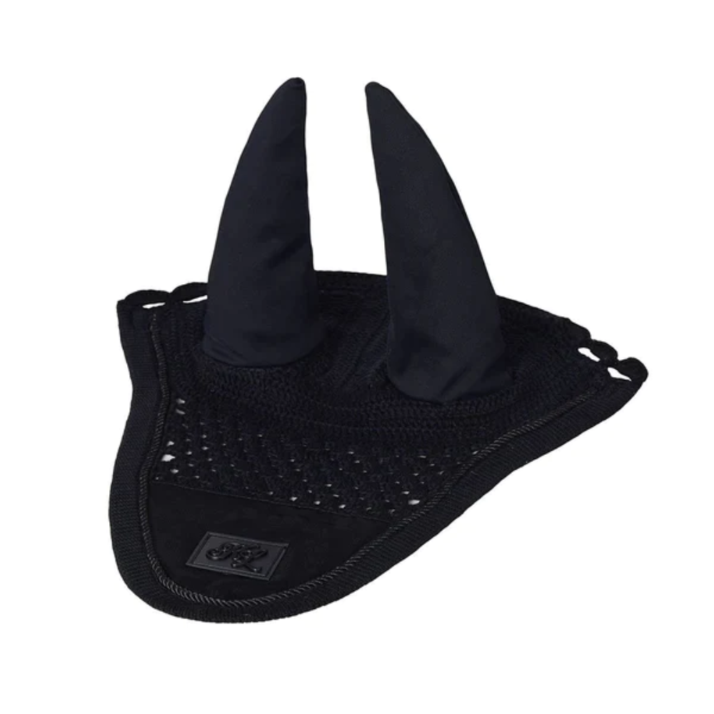 Our KLnixe crochet fly bonnet offers full coverage to protect your horse’s ears from dirt, bugs, and arena footing. The ears on this fly hat are water repellent and lined with a cozy brushed fleece to offer some noise dampening - ideal for those horses that aren’t yet accustomed to the sound of the crowd. Designed to sit comfortably under all bridles and halters, with elasticated ears for optimum comfort and unimpeded performance in the competition arena. Crafted out of a cotton and polyester mix, with tonal silk piping, polyester sparkle fabric on the front, and the crowning glory - a Kingsland patch front and center.