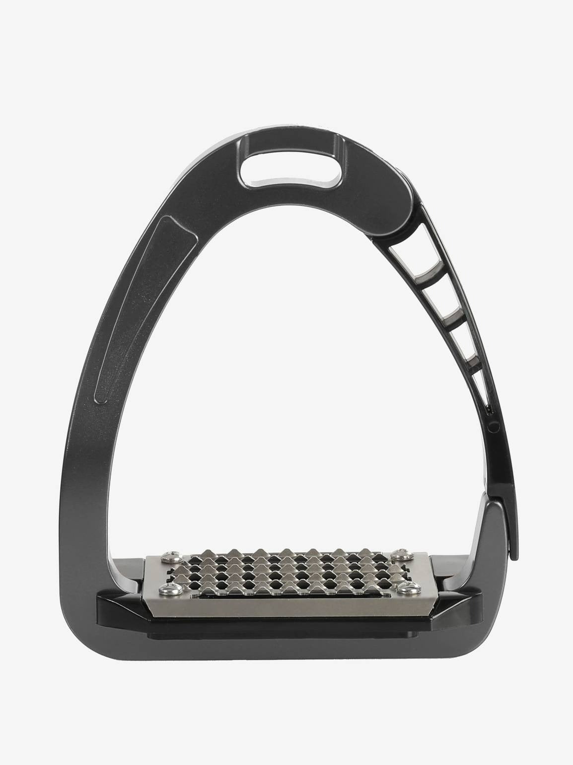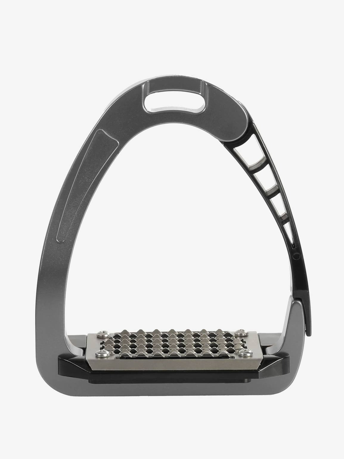 The stirrup bow is made of aluminium, while the opening arm is made of a special polyamide material. The stirrup pad is made of polyamide, too, and the tread is fabricated from stainless steel. The "AluPro" model, in principle, provides the same function as the Arena "HiFlex", but it is based on different materials.